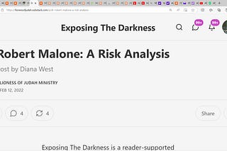 Diana West's seminal scholarship piece in the LIONESS of JUDAH Ministry substack, focused on Robert Malone; "Malone should not be head of…