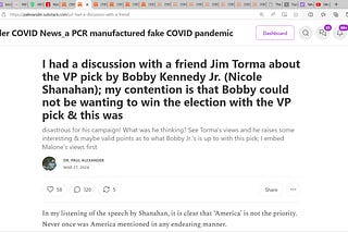Dr. Robert Malone: A Risk Analysis; Robert Malone should not be at the helm, and I don't want to let time go by before mentioning it.’