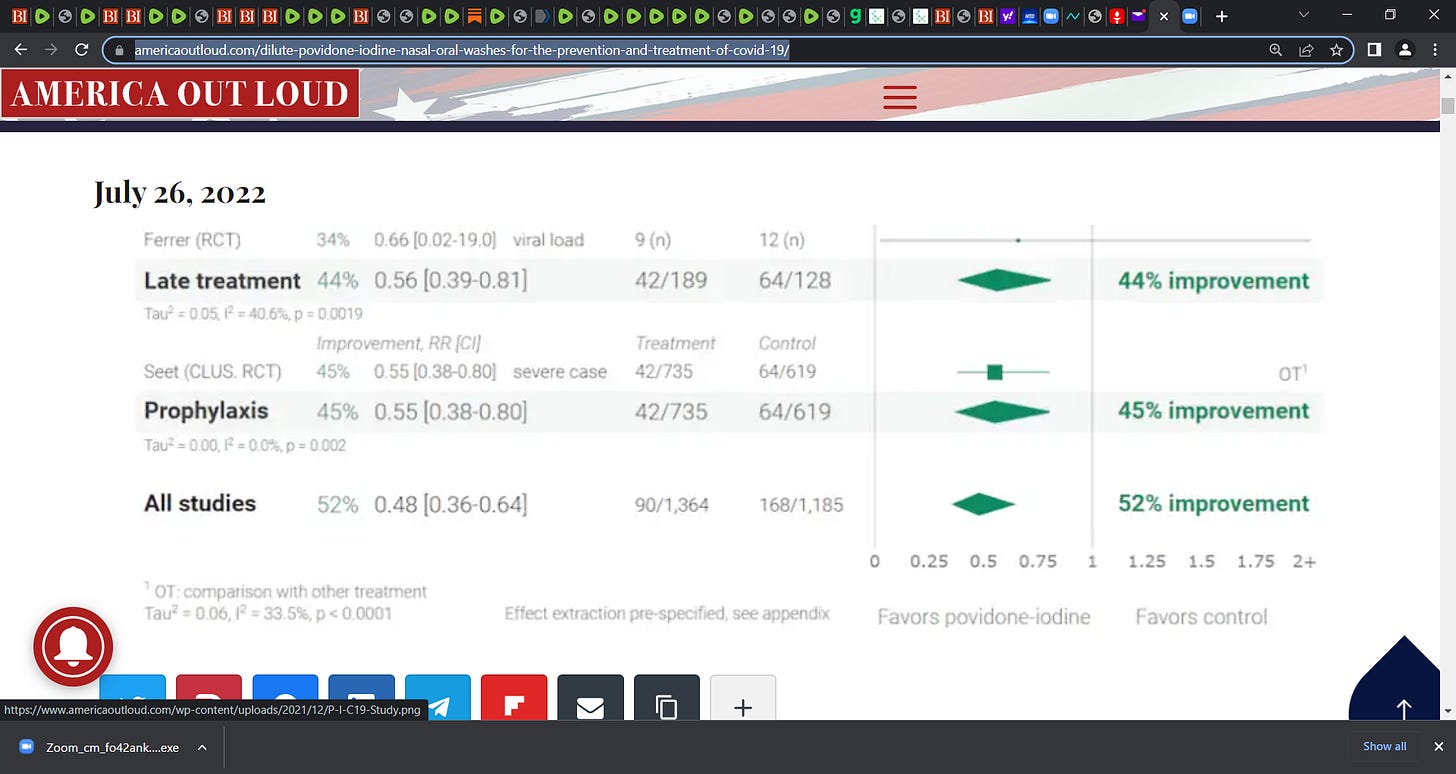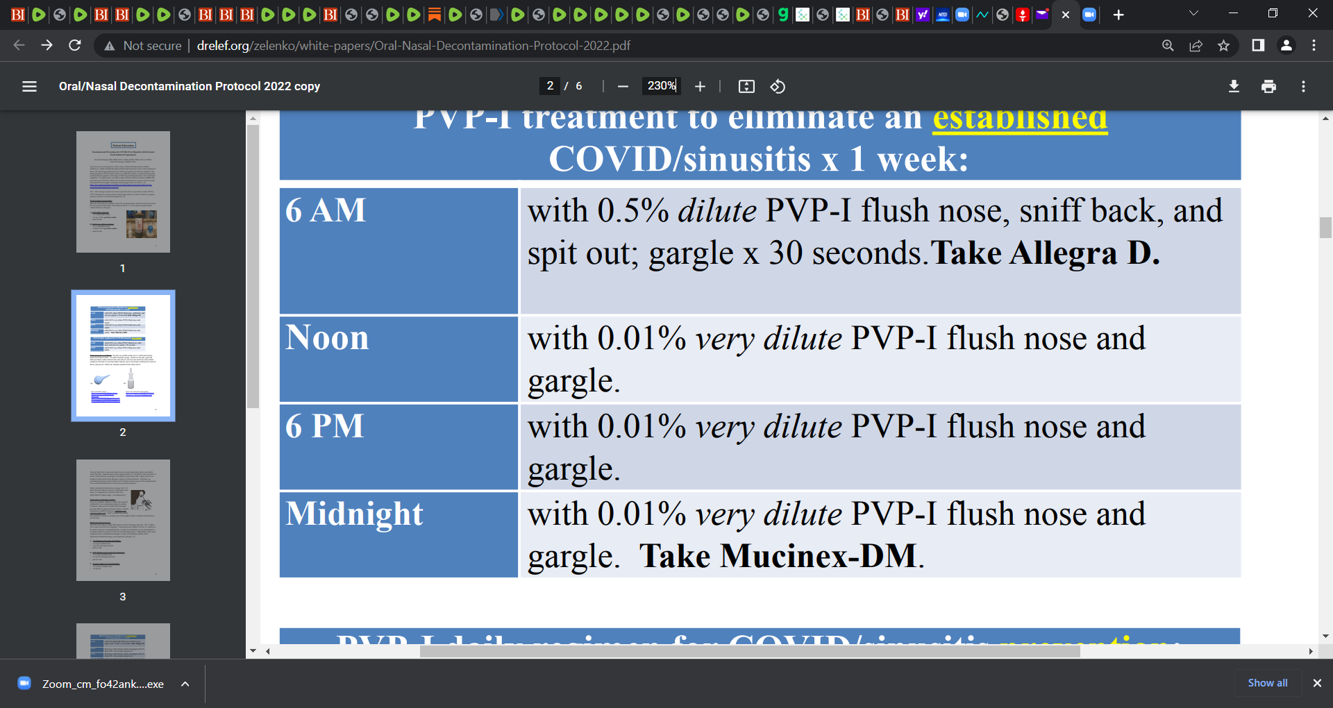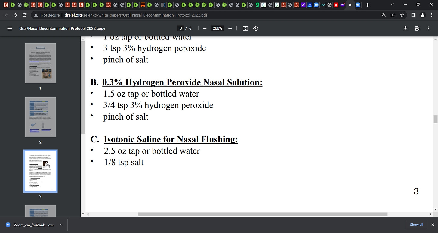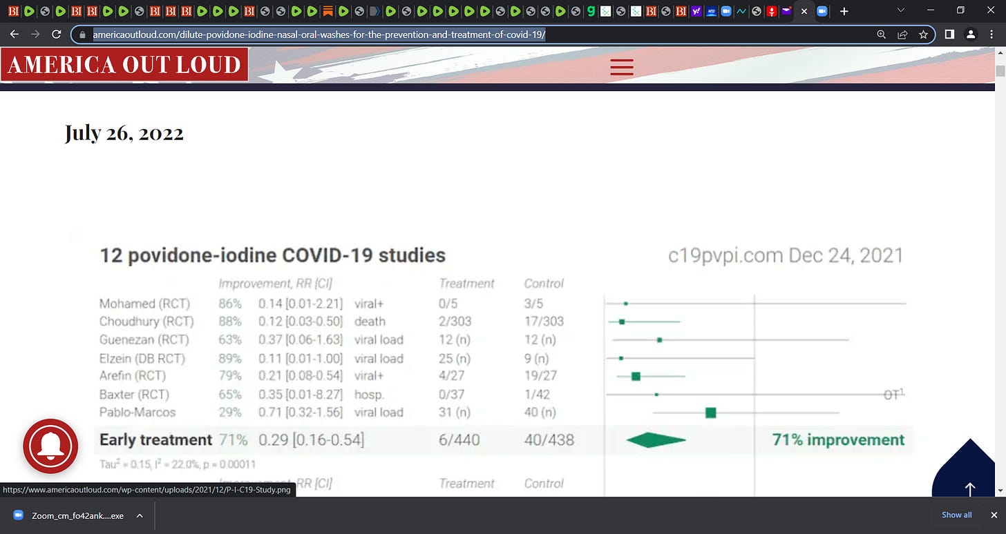 Povidone-Iodine Nasal/Oral Wash is near 100% effective in killing COVID virus in the nasal oral cavity and had we known of the nasal oral wash (we were clued into this by oral dental surgeons who came forward to explain what they do daily even before COVID emerged to mitigate pathogen exposure from patients), then we would not have needed early treatment. This nasal oral wash is that effective and you should use once you go outside and think you are exposed. Effective prevention and we recommend during this era of such elevated transmission risk from COVID BA.4 and BA.5 sub-variants/clades. Especially those who are COVID vaccinated, you are at tremendous risk for infection. Povidone-iodine or hydrogen peroxide or sodium hypochlorite, diluted as described, no swallow, swish and spit etc.