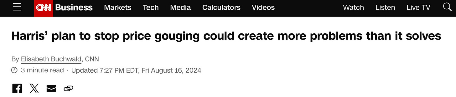 And at the same time Harris proposes slamming the inflation accelerator down to the floor, she’s turning around and blaming the problem that the government is creating—inflation—on grocery stores and “price gouging.”