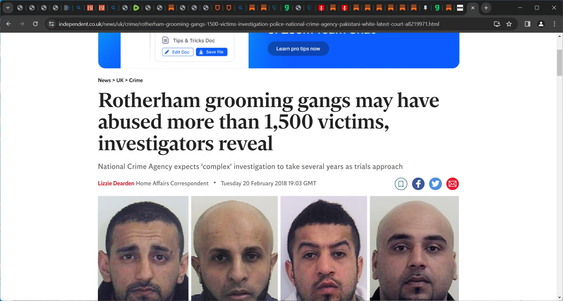 2014 report commissioned by UK's Rotherham Council said that at least 1,400 children were subjected to islamic male rape & sexual exploitation in Rotherham between 1997 & 2013.