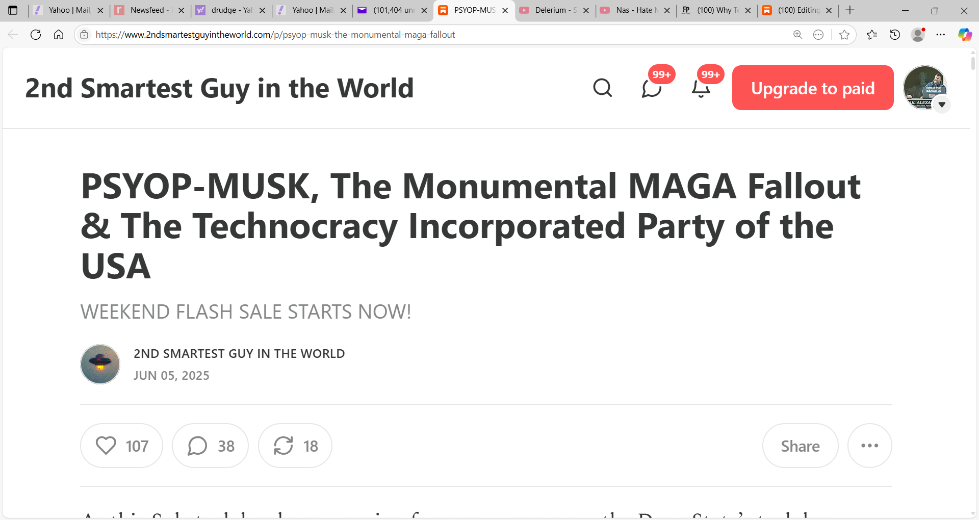 After that last X post the odds of President Trump and PSYOP-MUSK repairing their imploding relationship is now at around less than zero, though maybe The Don will perform some 5D chess on his unfaithful tech bro?