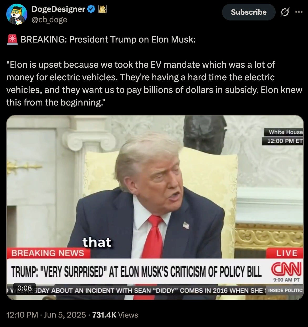 Which is precisely why President Trump rightfully calling for an end to the outrageous EV subsidies hit PSYOP-MUSK so hard: