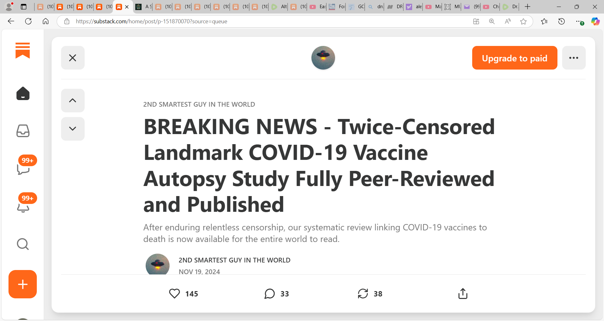 2nd Smartest Guy in the World reports that our review on the harms & deaths of the Malone Bourla et al. mRNA gene vaccine was FINALLY published after being denied! 2nd is like a family I never knew I