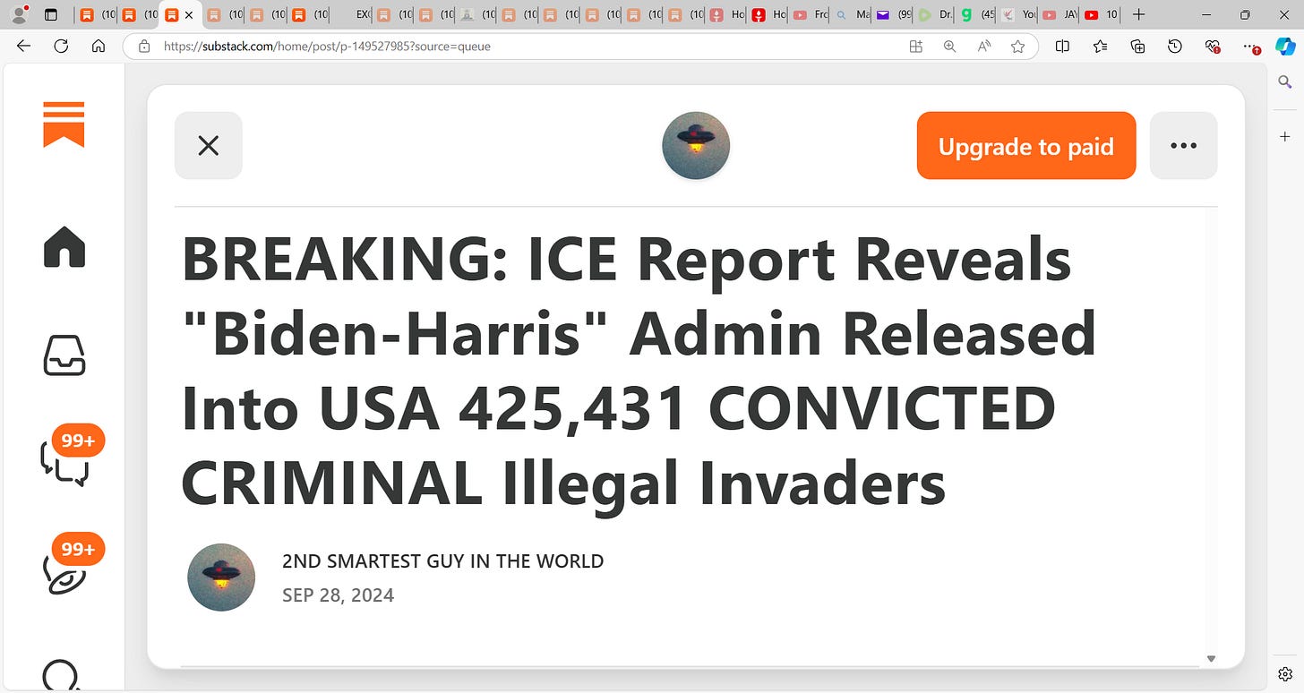 2nd Smartest Guy in the World substack dovetails 100% with what I wrote last night that Harris-Biden-Obama conspired to HARM, kill Americans recklessly by releasing hundreds of thousands of illegals