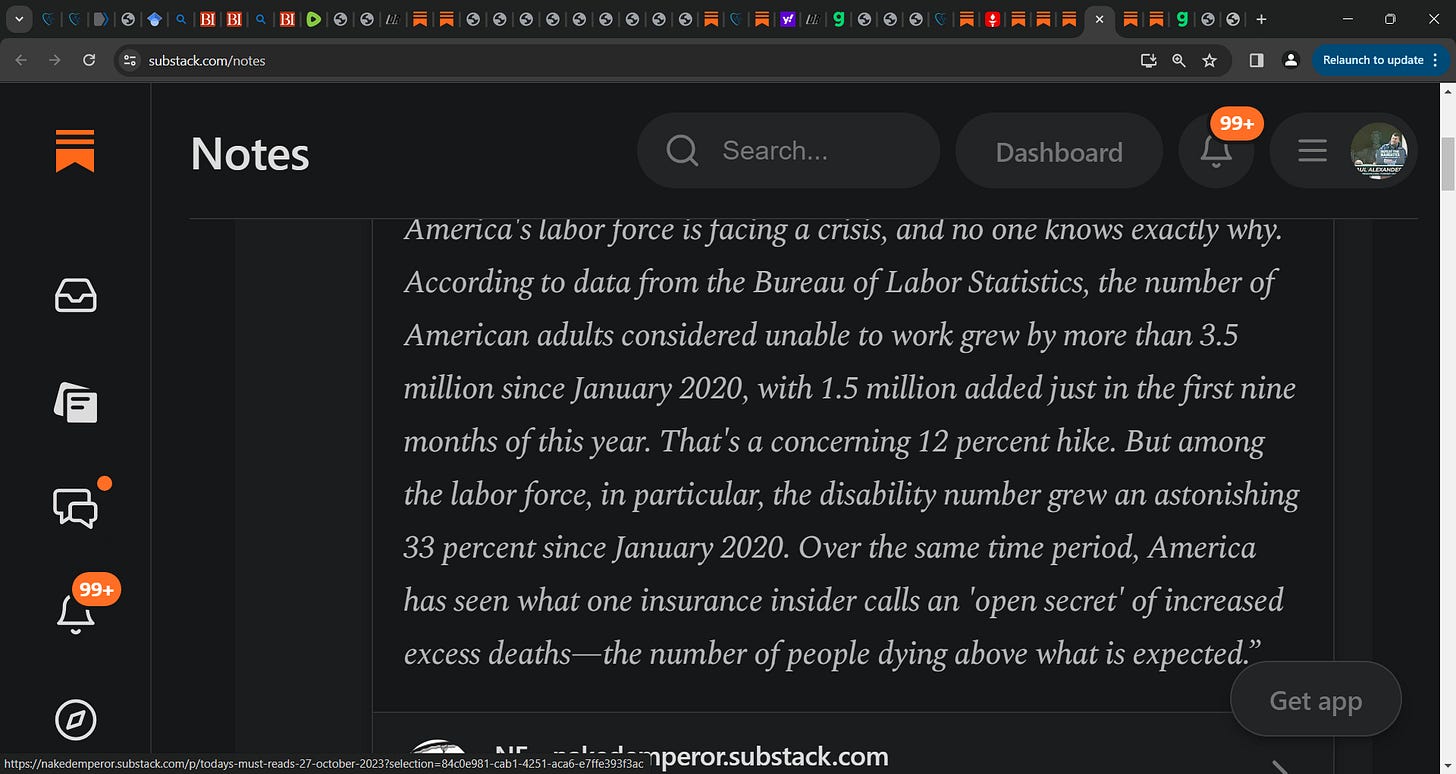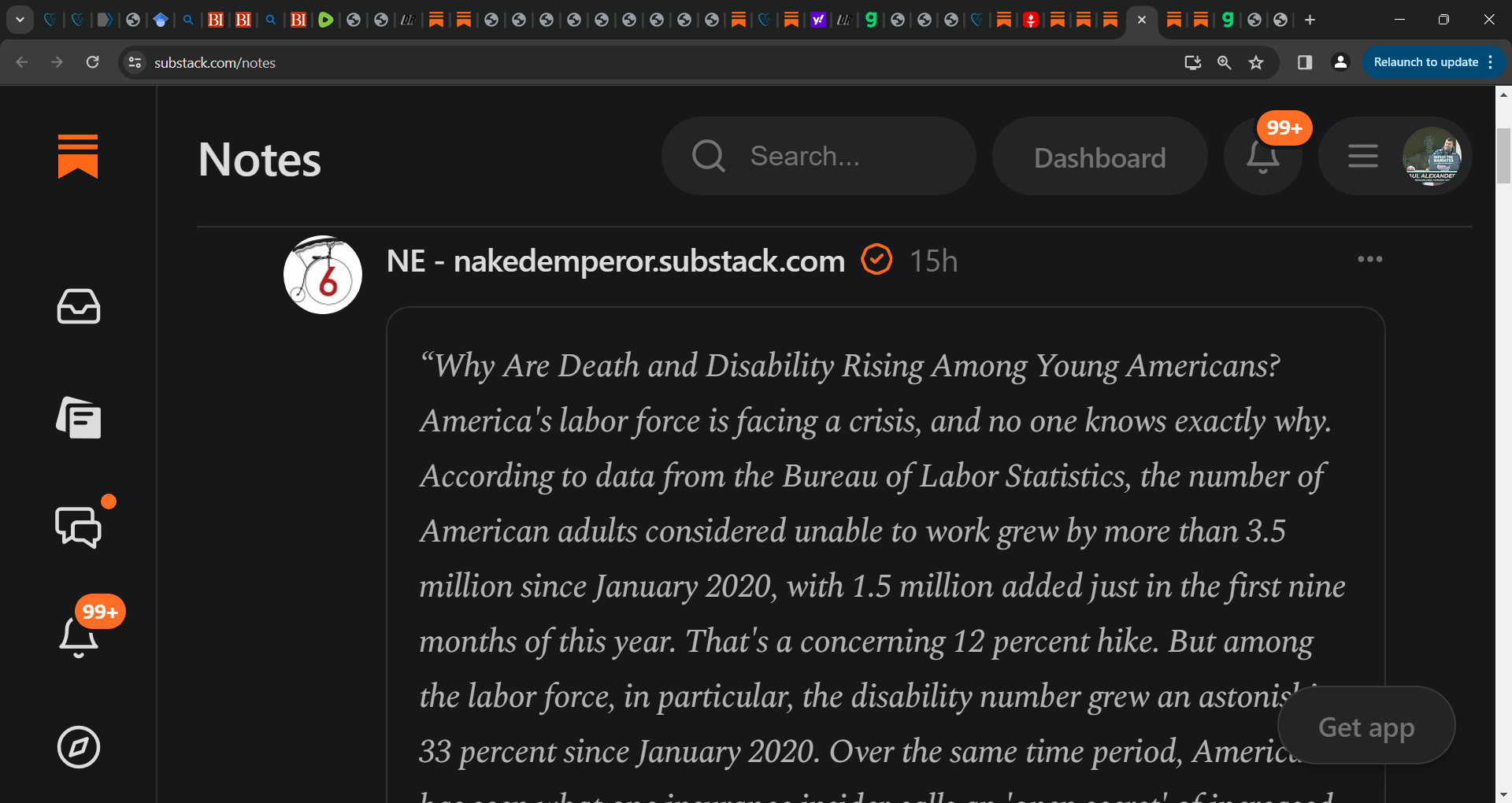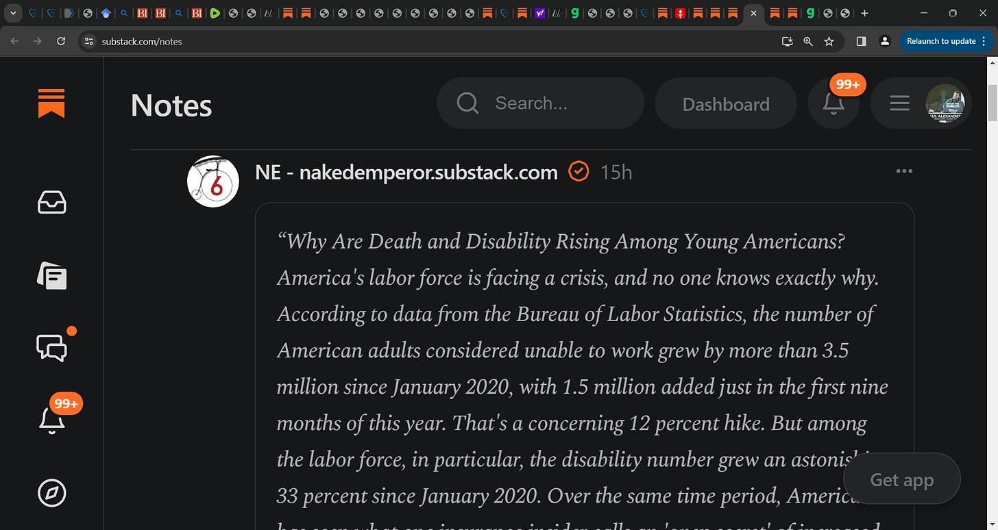 dangerous are they? is the benefit worth the risk and 3) why is death and disability rising among YOUNG Americans? I think (you too) that it is linked directly to the mRNA vaccine (excess mortality)
