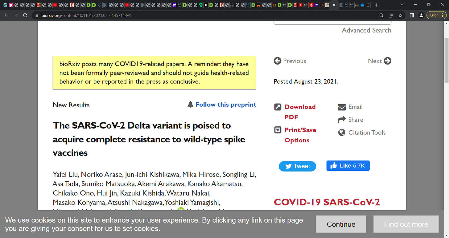 ‘the Delta variant completely escaped from anti-N-terminal domain (NTD) neutralizing antibodies, while increasing responsiveness to anti-NTD infectivity-enhancing antibodies…BNT162b2-immune sera lost neutralizing activity and enhanced the infectivity. Unique mutations in the Delta NTD were involved in the enhanced infectivity by the BNT162b2-immune sera.’