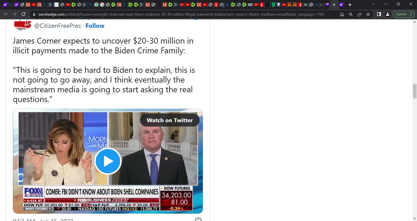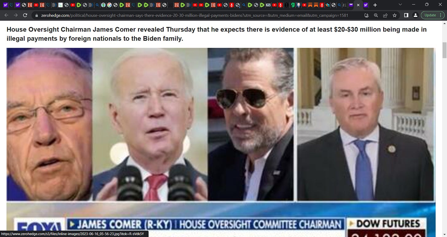 $30 million in bribes to Bidens? Is this real? I don't know but we have to look at this seriously! 'House Oversight Chairman Says There Is Evidence Of $20-$30 Million Of Illegal Payments To Bidens'