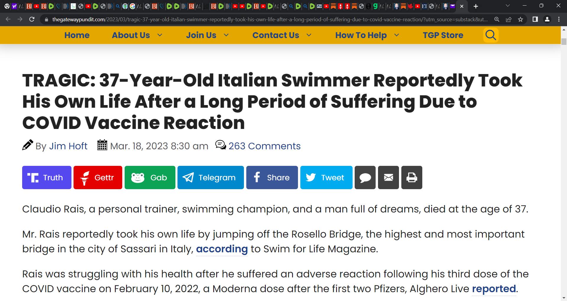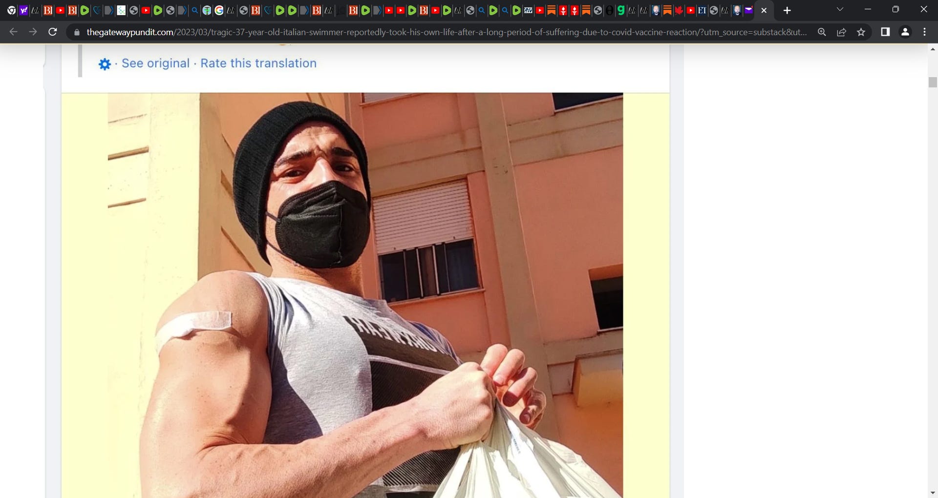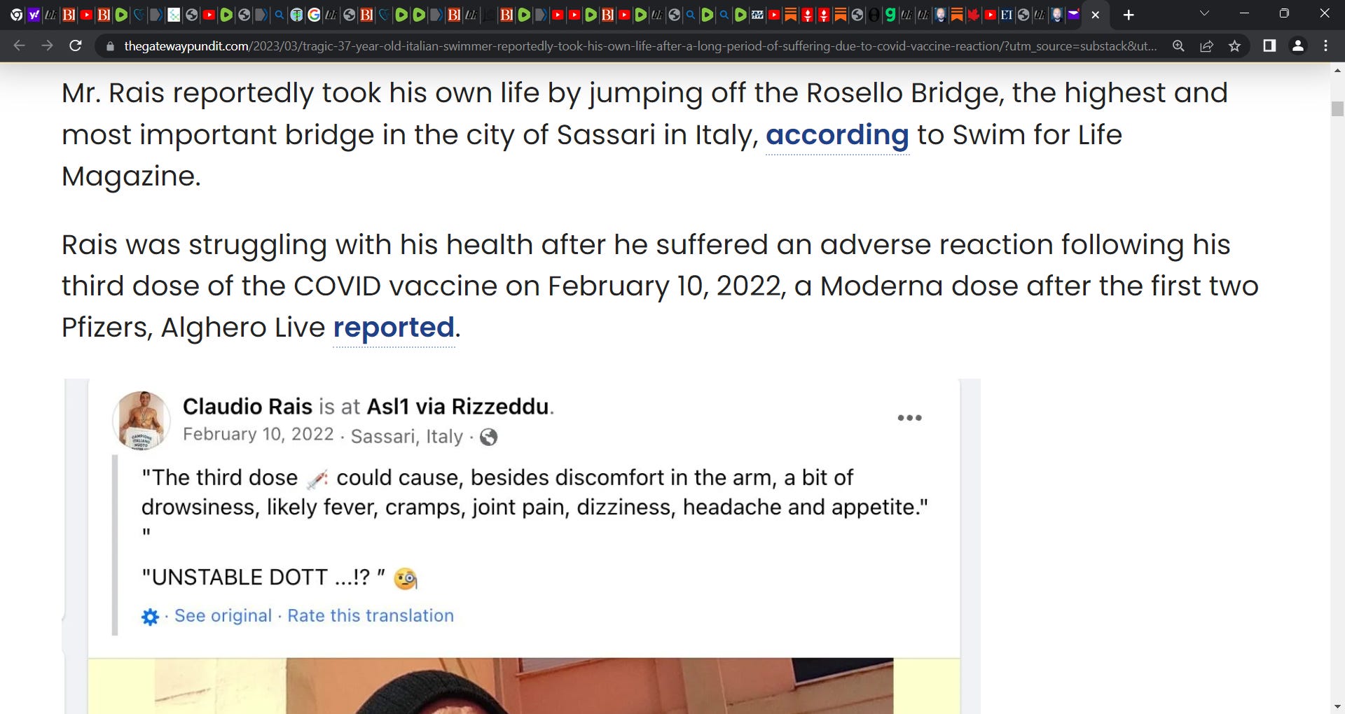 37 year old Italian personal trainer, swimmer & triathlete Claudio Rais jumped to death, killed himself after catastrophic effects of Pfizer & Moderna Malone, Kariko, Weissman (Fauci) mRNA technology