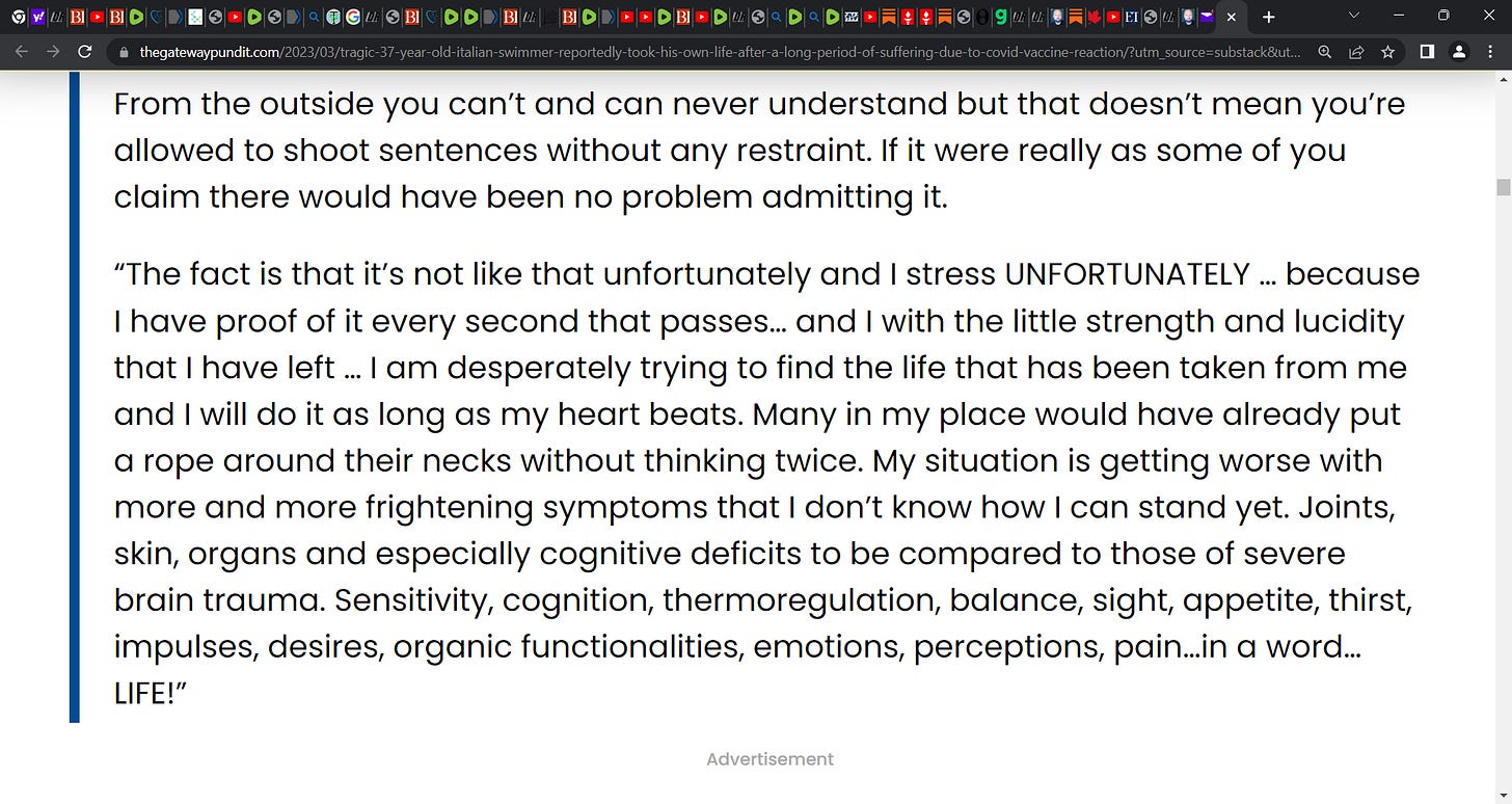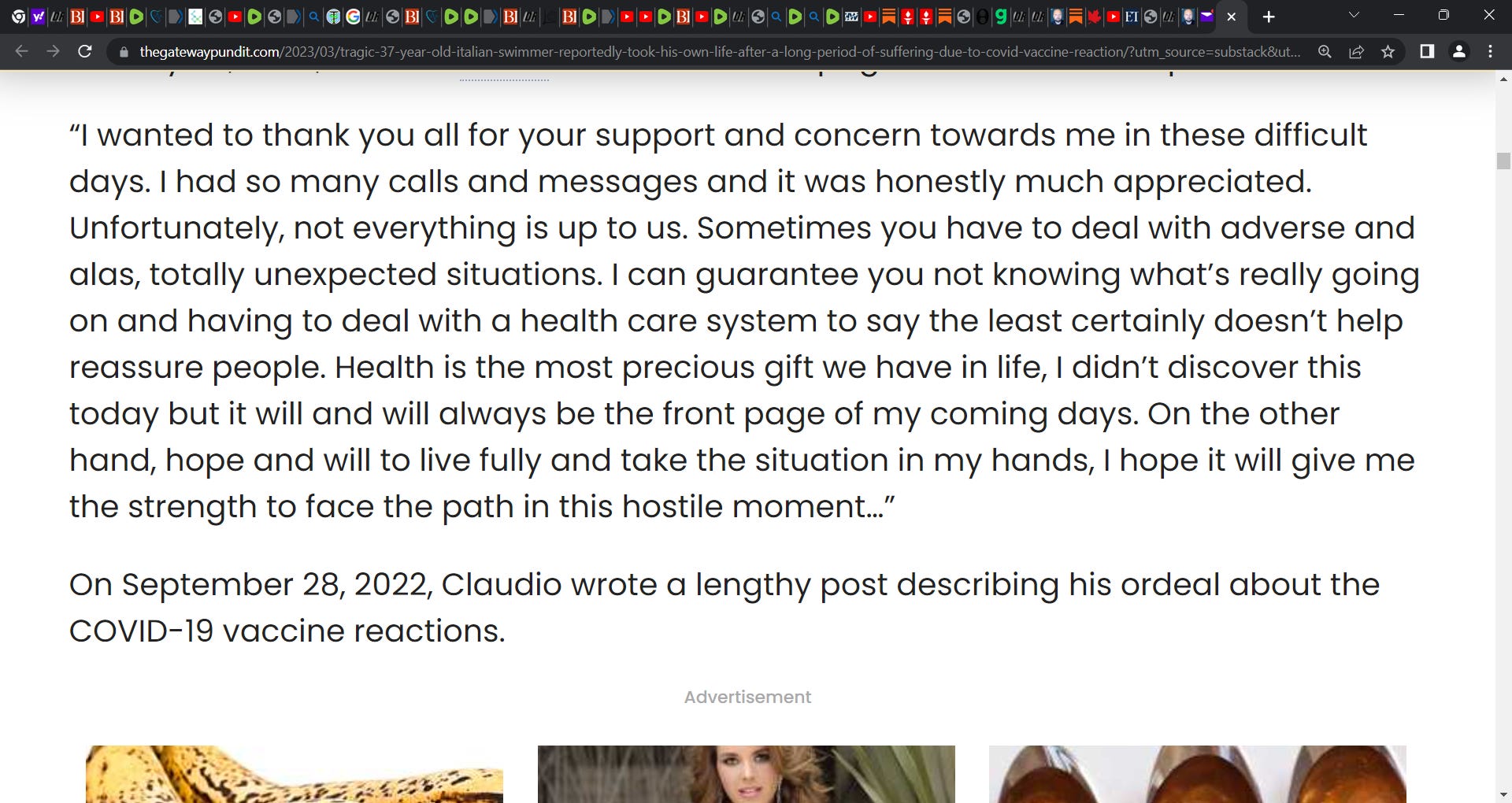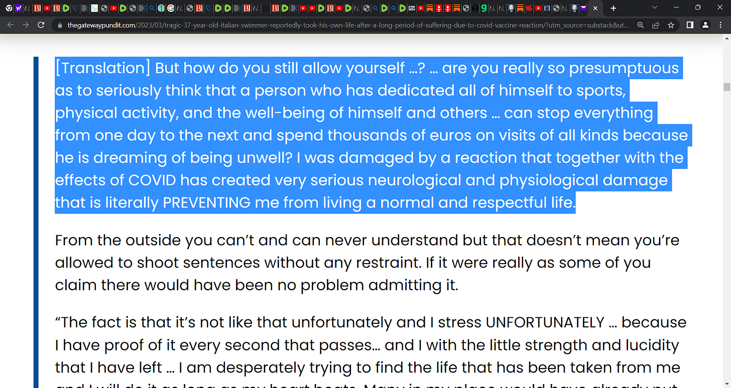 37 year old Italian personal trainer, swimmer & triathlete Claudio Rais jumped to death, killed himself after catastrophic effects of Pfizer & Moderna Malone, Kariko, Weissman (Fauci) mRNA technology