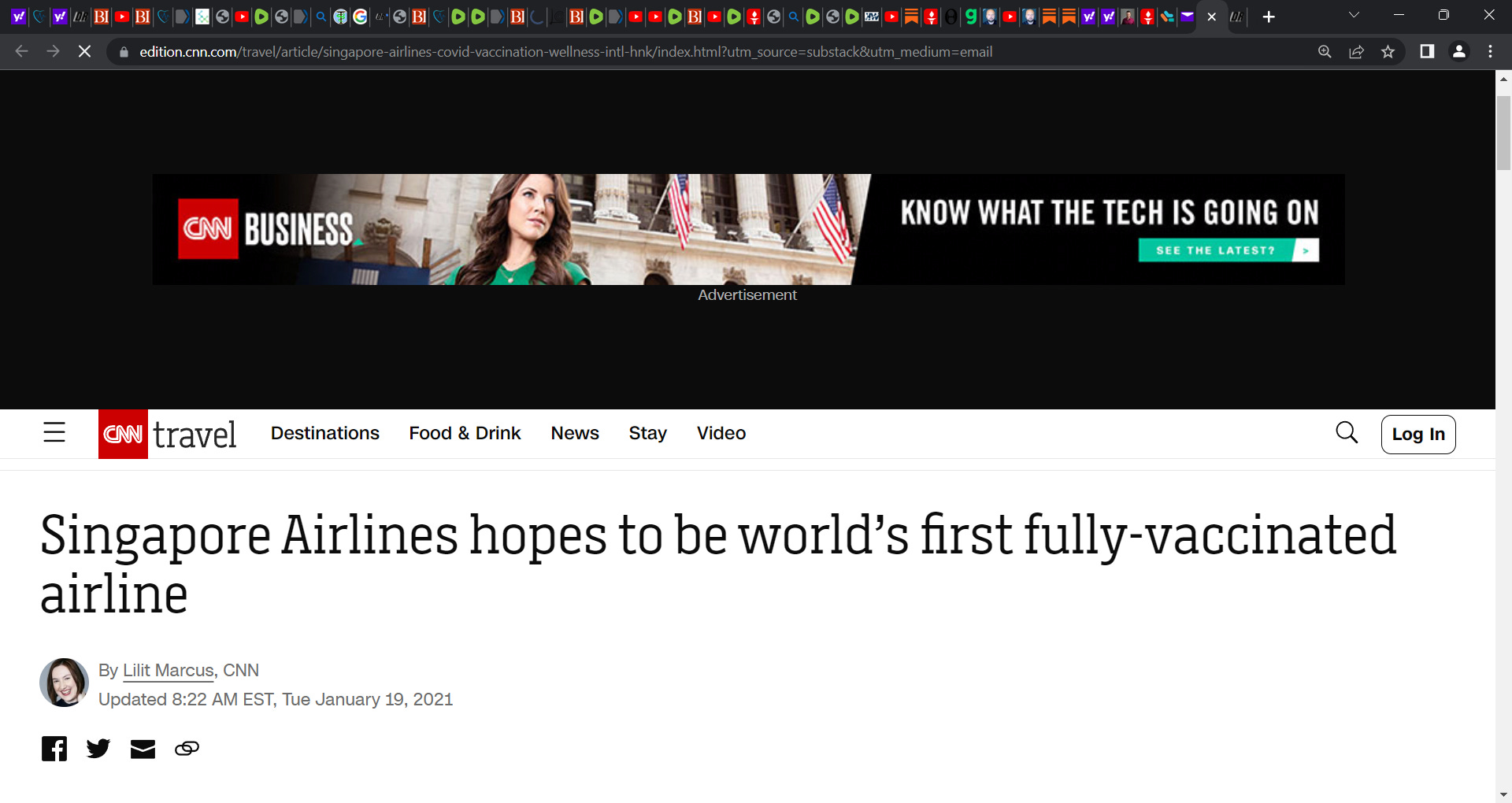 Jan.2021 - Singapore Airlines hopes to be the world’s first fully-vaccinated airline.