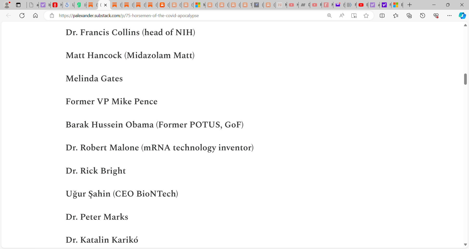 Francis Collins is on my GROWING list of the 81 Horsemen of the COVID Apocalypse who must sit under oath and if shown to have costed lives, if his actions, his COVID policies ruled so by juries and judges, killed people, then Collins must be put to death by firing squad…see him here: