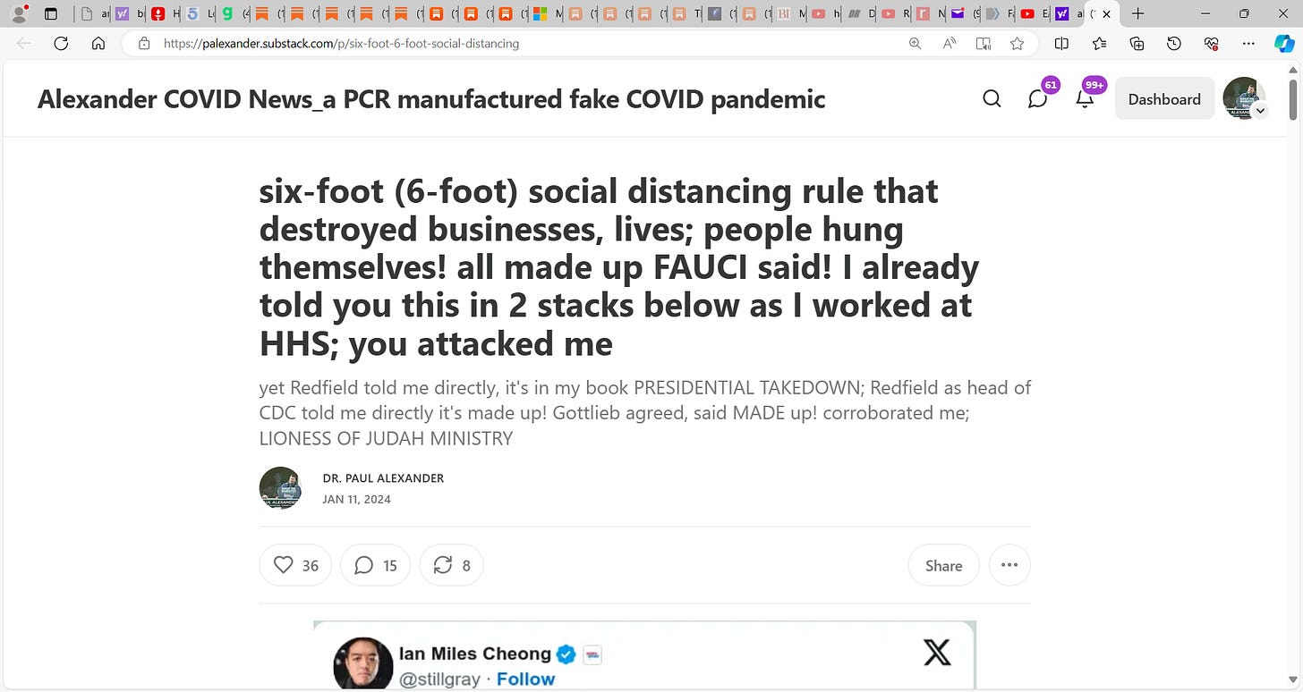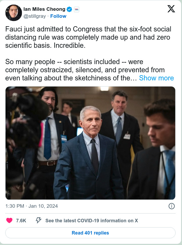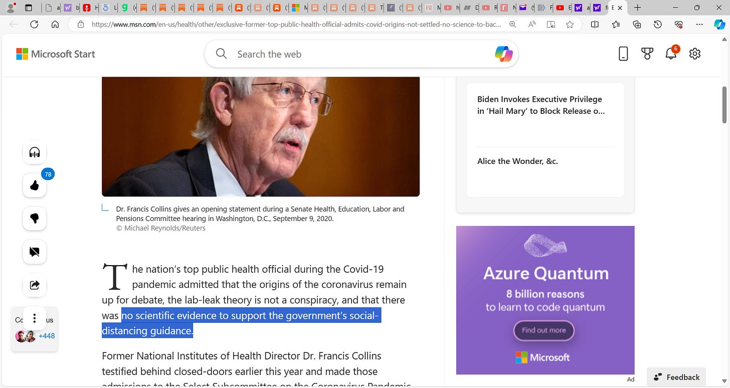 Dr. Francis Collins who was Fauci's boss, headed NIH & helped impose the 6 foot lie that fucked business owners & many hung themselves, lost everything; there was NO science EVER to support 6 foot