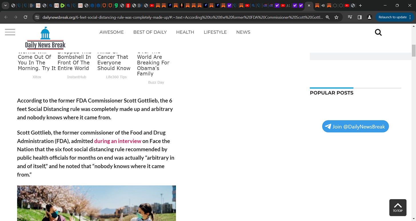 6-foot (six foot) SOCIAL DISTANCING rule ALWAYS a fraud lie BASED on ZERO science, just MADE it UP! told you this years now, Redfield told me, Gotlieb confirmed! Francis Collins headed NIH & FUCKED us