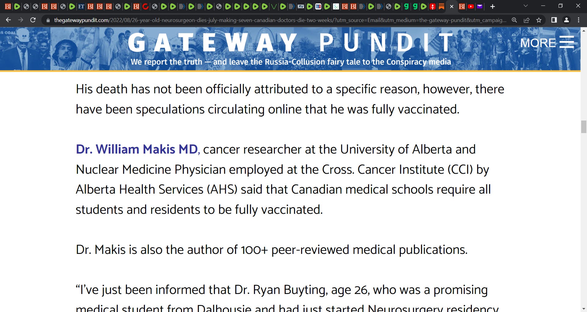 Dr. William Makis MD has tracked thirteen Canadian doctors that have died.