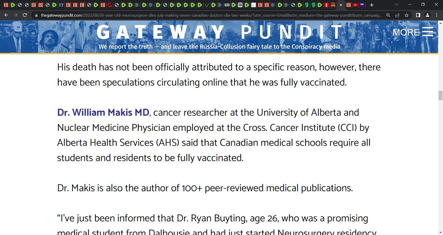 I also have the seen the story by Dr Makis and another Dr. and that it is now 13 dead doctors. I think all deaths were after the boosters were recommended/mandated in early/mid July, 2022.