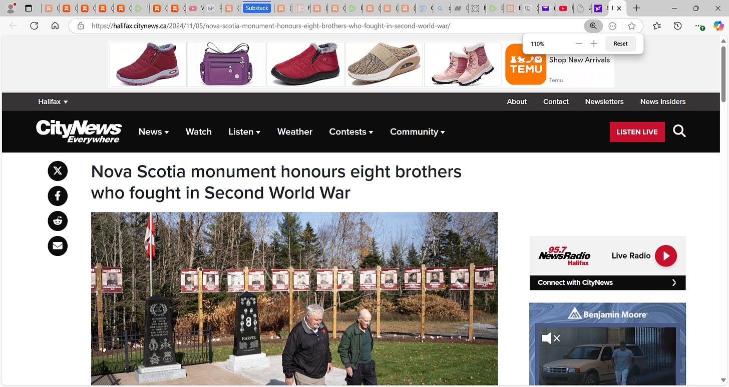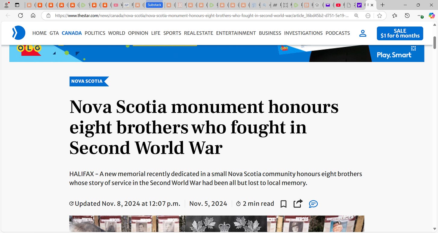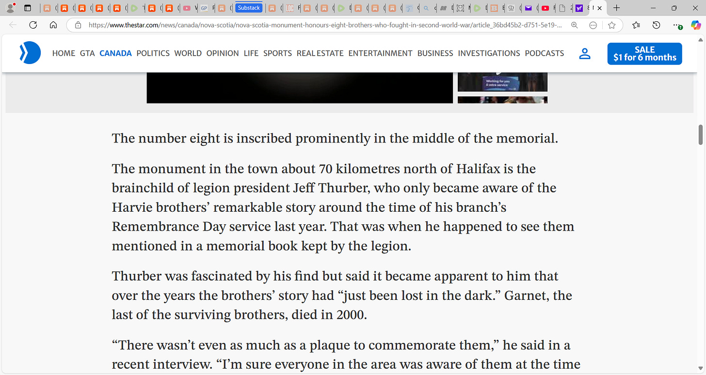 From Nova Scotia, some never returned home & what service and sacrifice! These are better men that I and we must never ever forget them! Avard, Burrell, Edmund, Ernest, Ervin, Garnet, Marven & Victor