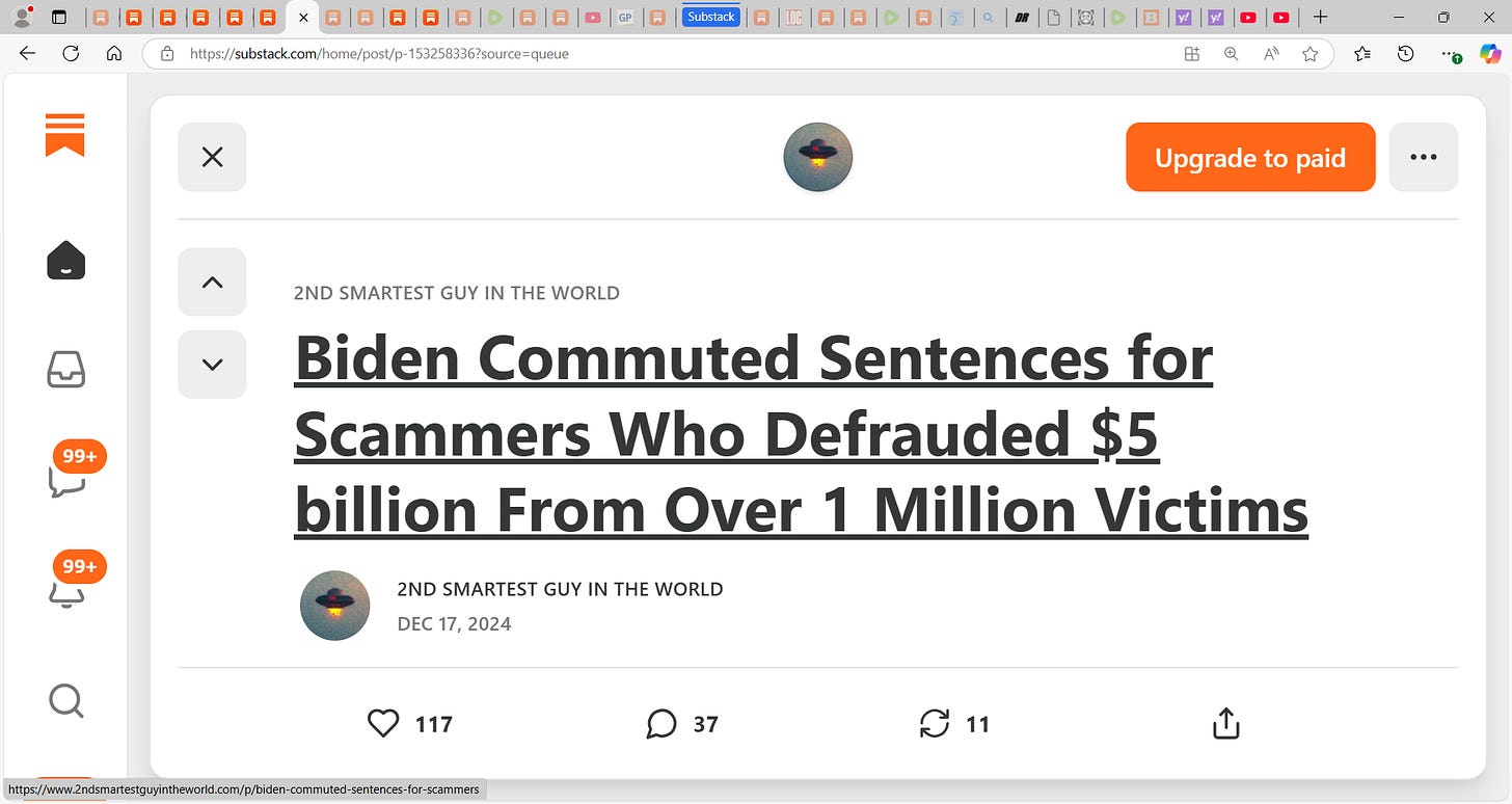 Abuse of the Presidential pardon power in your face, 2nd Smartest Guy in the World shows us why: "Biden Commuted Sentences for Scammers Who Defrauded $5 billion From Over 1 Million Victims"