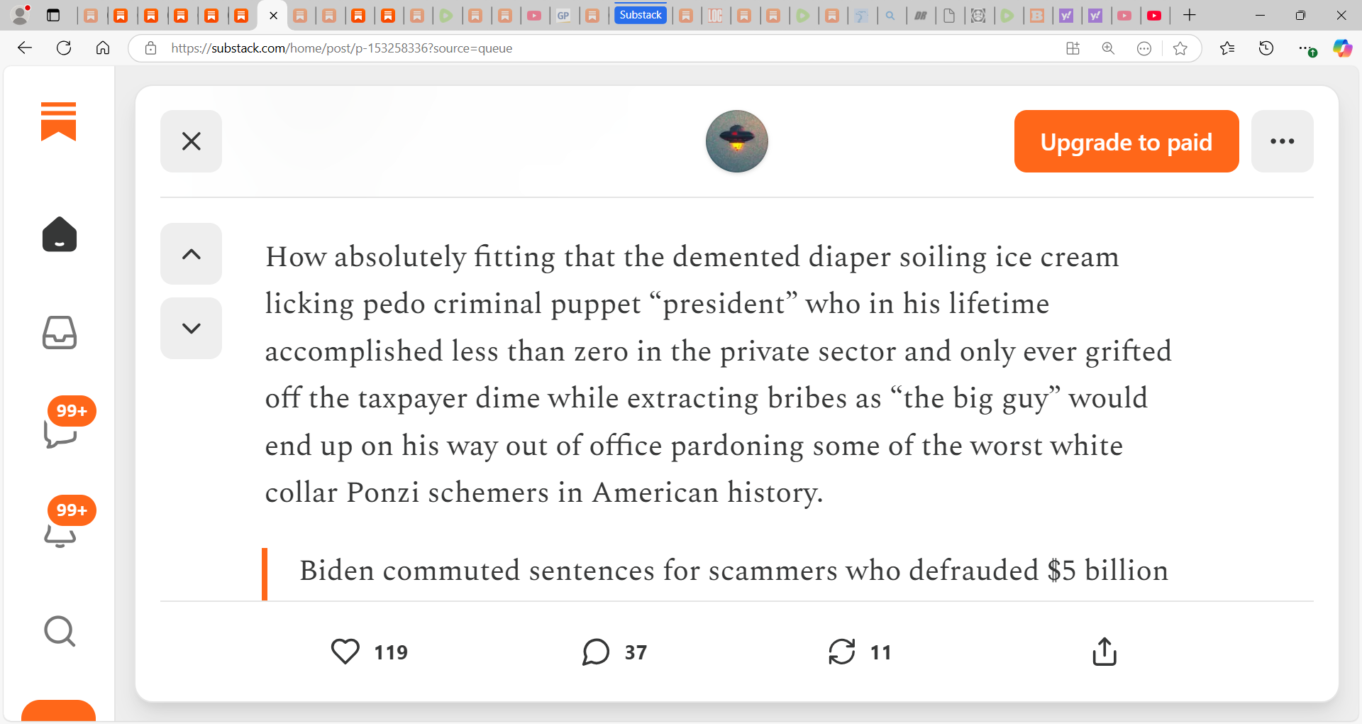 Ya know ... with Old Joe's acknowledged mental decline I have to believe that these pardons can easily be overturned/nullified. Pure evil abounds with this administration.