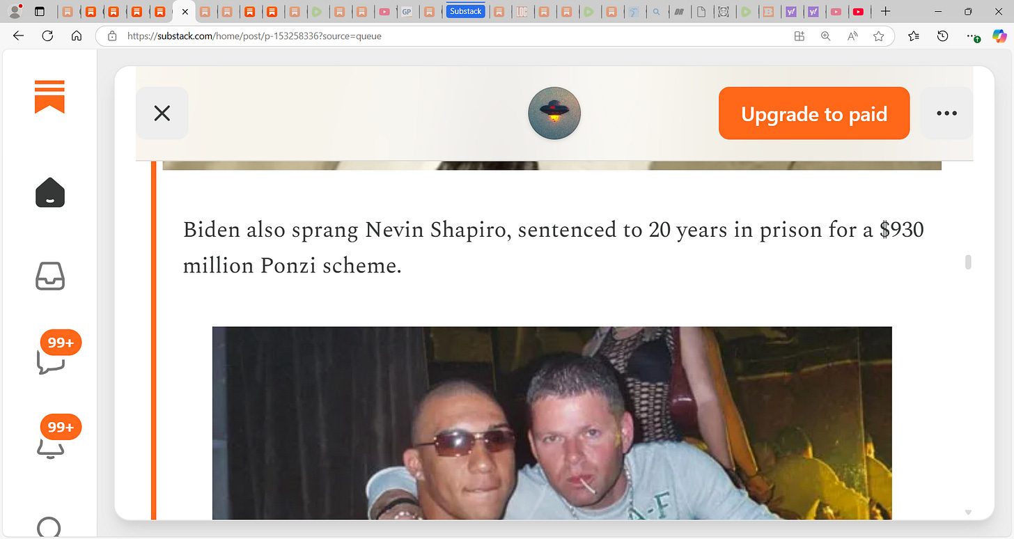 The entire illegitimate Federal government operating out of the foreign nation of Washington, D.C. is nothing more than a monumental grifting democide operation, and “Biden” was the perfect puppet to continue this murderous looting spree against We the People; thus, it is of little surprise to anyone paying attention that as he shuffles out of the White House pumped full of dementia meds and methamphetamine cocktails with his blanked out dilated thousand-yard stare that he would spring from prison the worst of the worst scammers. And do not think for a second that all of these scammers did not sock away fortunes for themselves, and that more backroom kickbacks and favors are not in store for the Biden Crime Family.