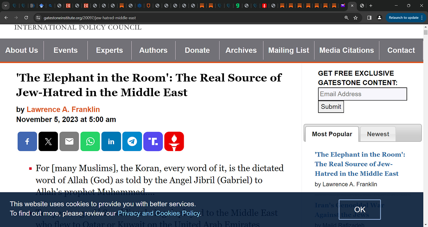 The "elephant in the room," which few commentators have had the courage to explore, is that for many Muslims, "Jew-hatred" is dogma. For them, the Koran, every word of it, is the dictated word of Allah (God) as told by the Angel Jibril (Gabriel) to Allah's prophet Muhammad. The Koran does not, like much of the Bible, consist of descriptive stories that can be believed or not as the reader wished. It is more proscriptive, like the Ten Commandments. One cannot say, "Oh, He didn't really mean the one about adultery."