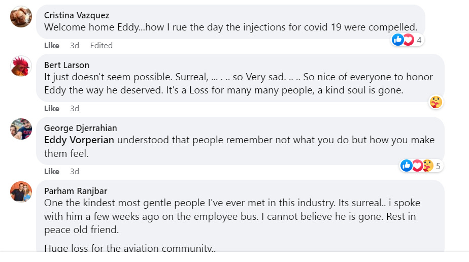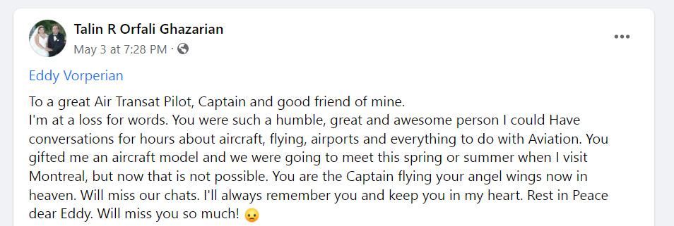 Air Canada & Air Transat pilot Eddy Vorperian at 48 & 25 years experience, dies suddenly May 3; this is the 5th sudden pilot death & 10 known inpacitations: was this the mRNA technology COVID shot?