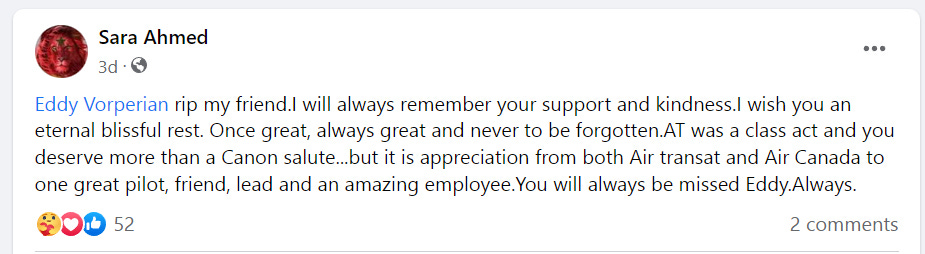 ‘VIDEO: Air Transat performs Water Canon salute for the returning body of Pilot Eddy Vorperian.