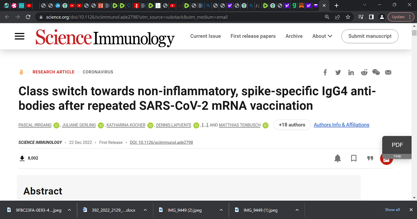 Tolerance? Irrang et al.: "Class switch towards non-inflammatory, spike-specific IgG4 antibodies after repeated SARS-CoV-2 mRNA vaccination"; researchers show multiple boosters subvert immune response