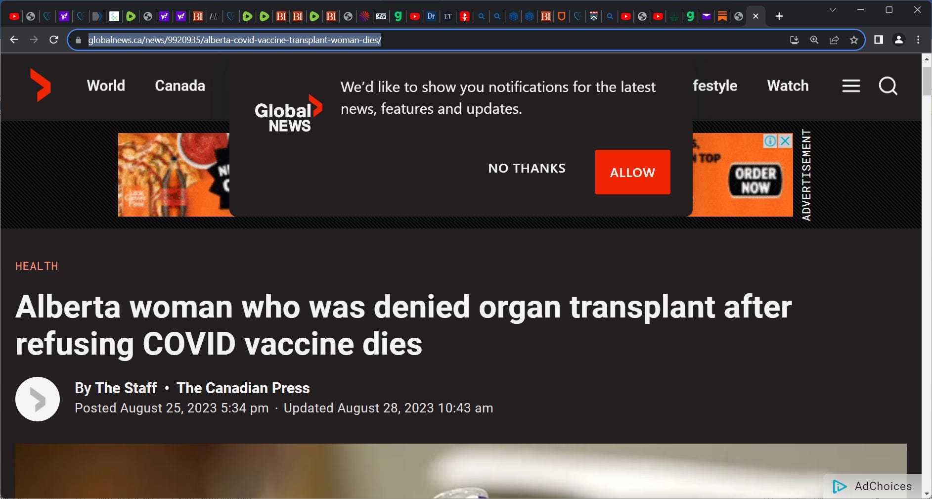 Bob Balayone: Aug 25, 2023, “Alberta woman dies after being denied transplant for refusing to get COVID vaccine. Sheila Annette Lewis refused the COVID-19 vaccine, and was denied a lifesaving organ