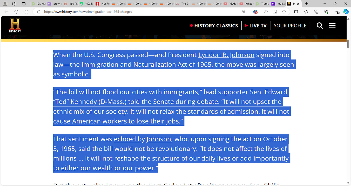 Thank Ted Kennedy for the mess we are in with his Immigration Act of 1965. Never met a leftist who did not seek to destroy America while living high on the hog protected in their nice compounds…while the illegal preys on fly over country.