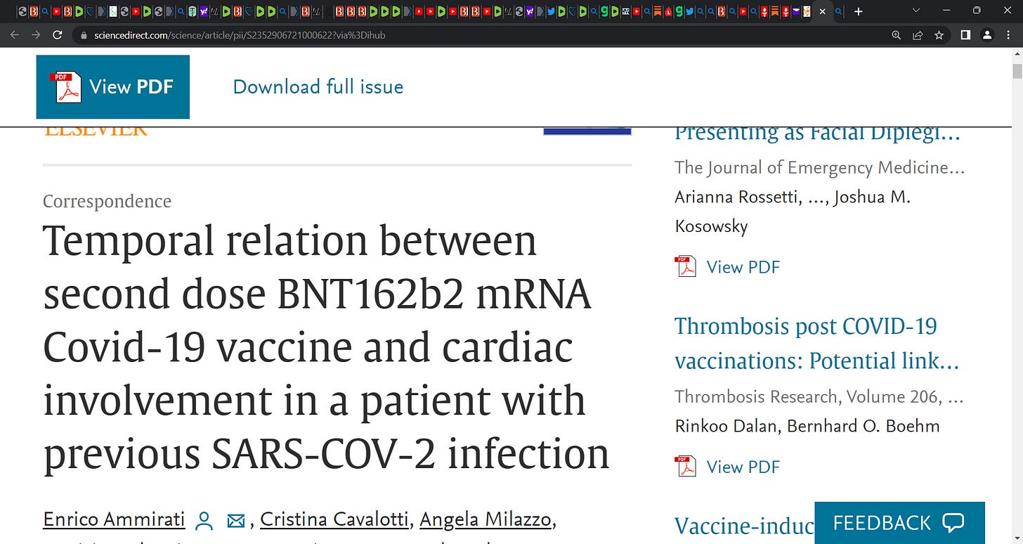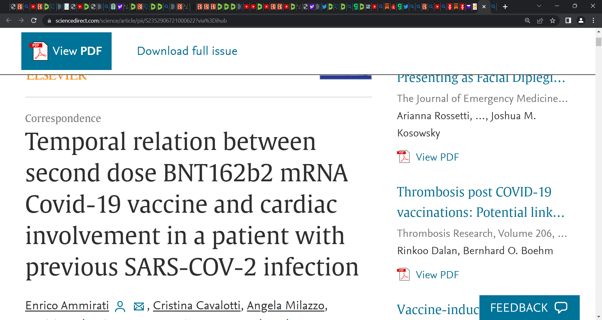 Ammirati et al.: "Temporal relation between second dose Pfizer BNT162b2 mRNA Covid-19 vaccine and cardiac involvement in a patient with previous SARS-COV-2 infection"