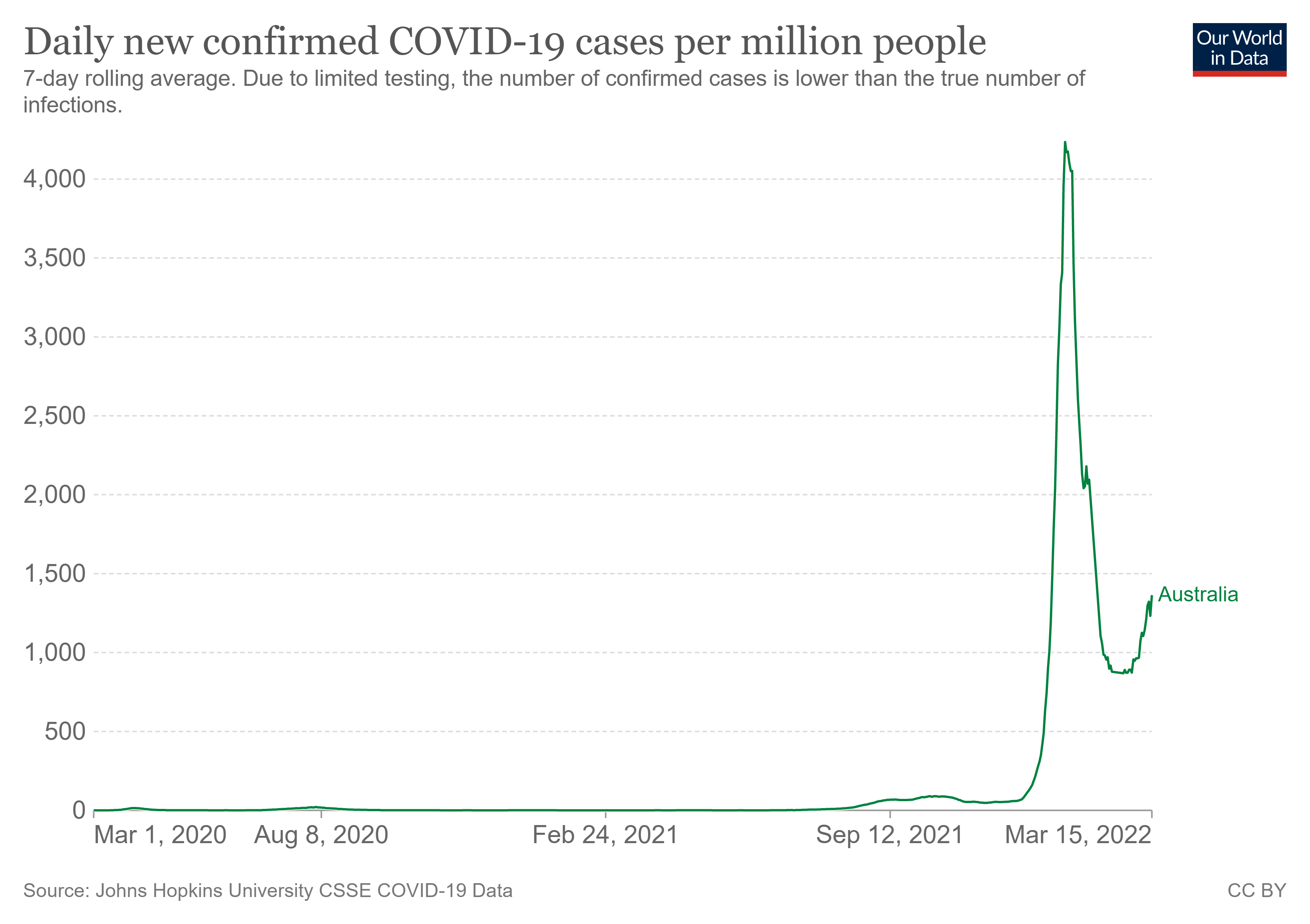 During the international/state border lockdowns they were testing everyone who scratched their nose. Then, when it became obvious the vaccines were not working, they significantly reduced the testing requirement. This had the effect of reducing the positives. Despite this, the cases have gone through the roof.