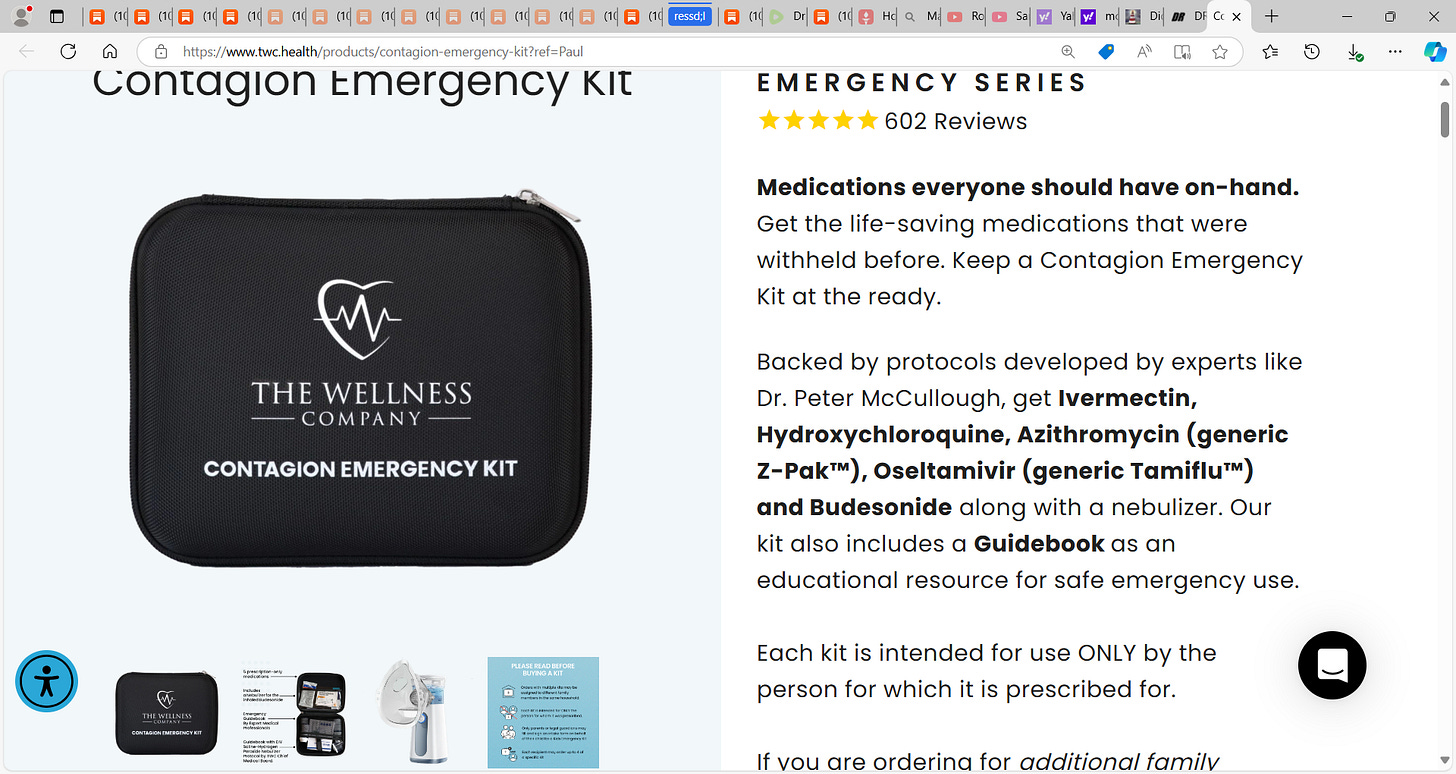 Please consider support of a good company Drs. McCullough, Risch, Thorp, myself support (they are our sponsors), The Wellness Company; see the emergency preparation kit (key component being antibiotics you were denied by doctors, pharmacists, governments during the fraud COVID), first aid kit, travel emergency kit, contagion control kit etc. Please consider the SPIKE SUPPORT (spike protein DETOX dissolving spike from mRNA vaccine, this is critical to remove spike form the mRNA vaccine/and DNA viral vector) formula with NATTOKINASE as well as the triple formula (SPIKE SUPPORT, BROMELAIN, CIRCUMIN)