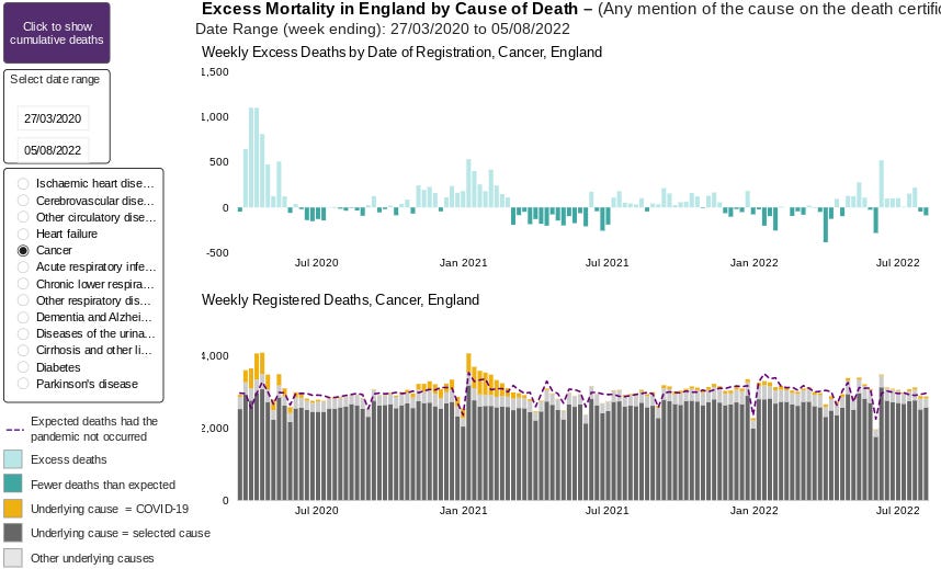 I don’t doubt that these will be contributing. But with the main causes of the excess deaths being related to the heart and circulatory system, and the Covid vaccines being known to injure the heart and cause clotting, it is frankly bizarre and irresponsible not to include the vaccines in a list of possible causes of a rise in heart deaths and strokes.
