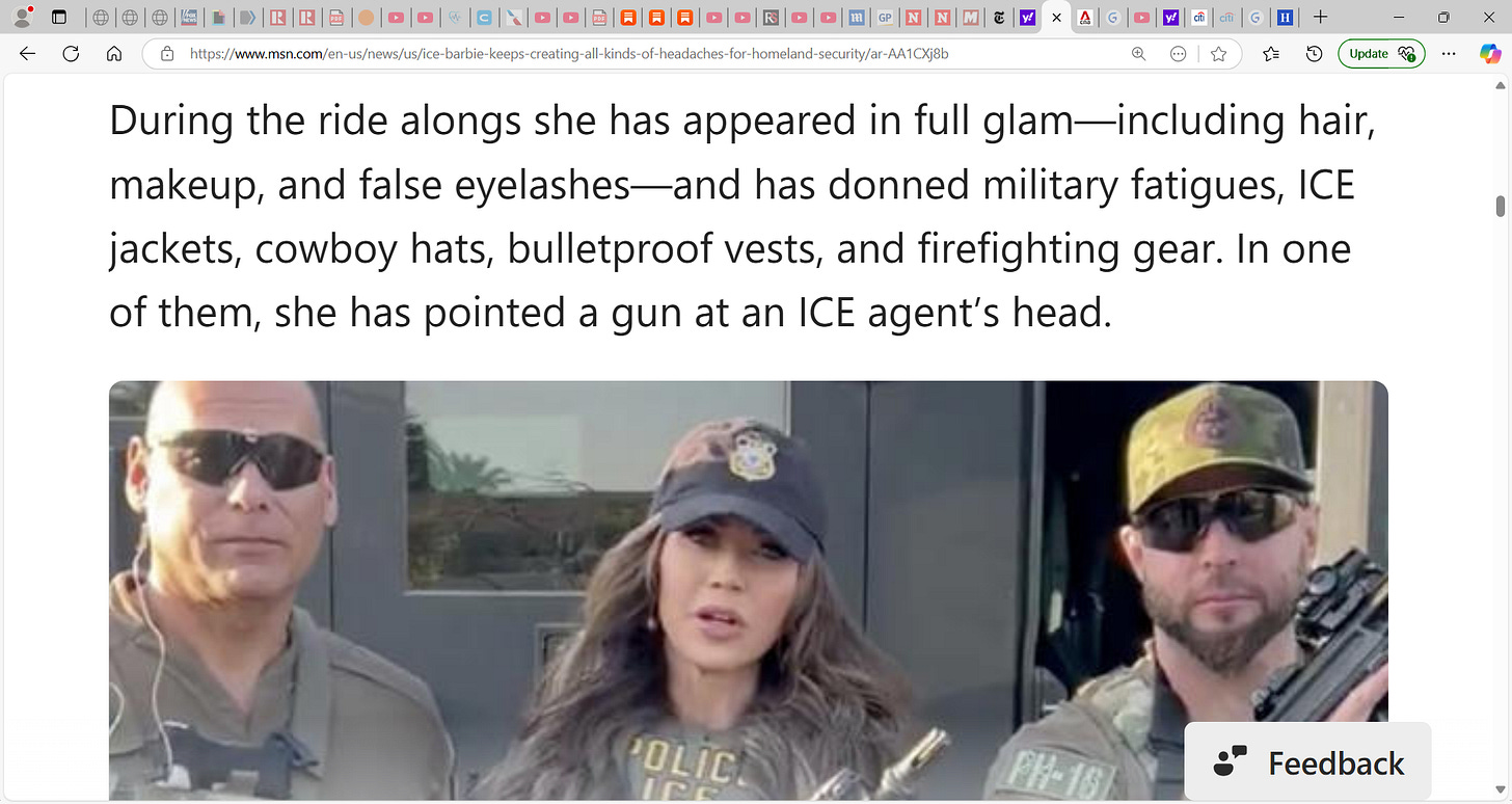 One thing is for sure, when Homeland Noem goes out with the boys, she is all glammed out! Hair done, check, make up, check, eyelashes, check, bling, check, lipgloss, check, special cameraman, check…we got it all covered.