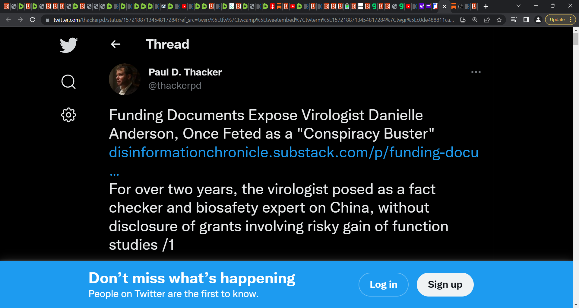 Are you surprised? "Danielle Anderson, ‘Expert’ Who Helped ‘Fact-Check’ Lab-Leak Theory to argue against it, Was Secretly Part Of Dangerous Coronavirus Research"; Paul Thacker & D. HOUSMAN; good job!