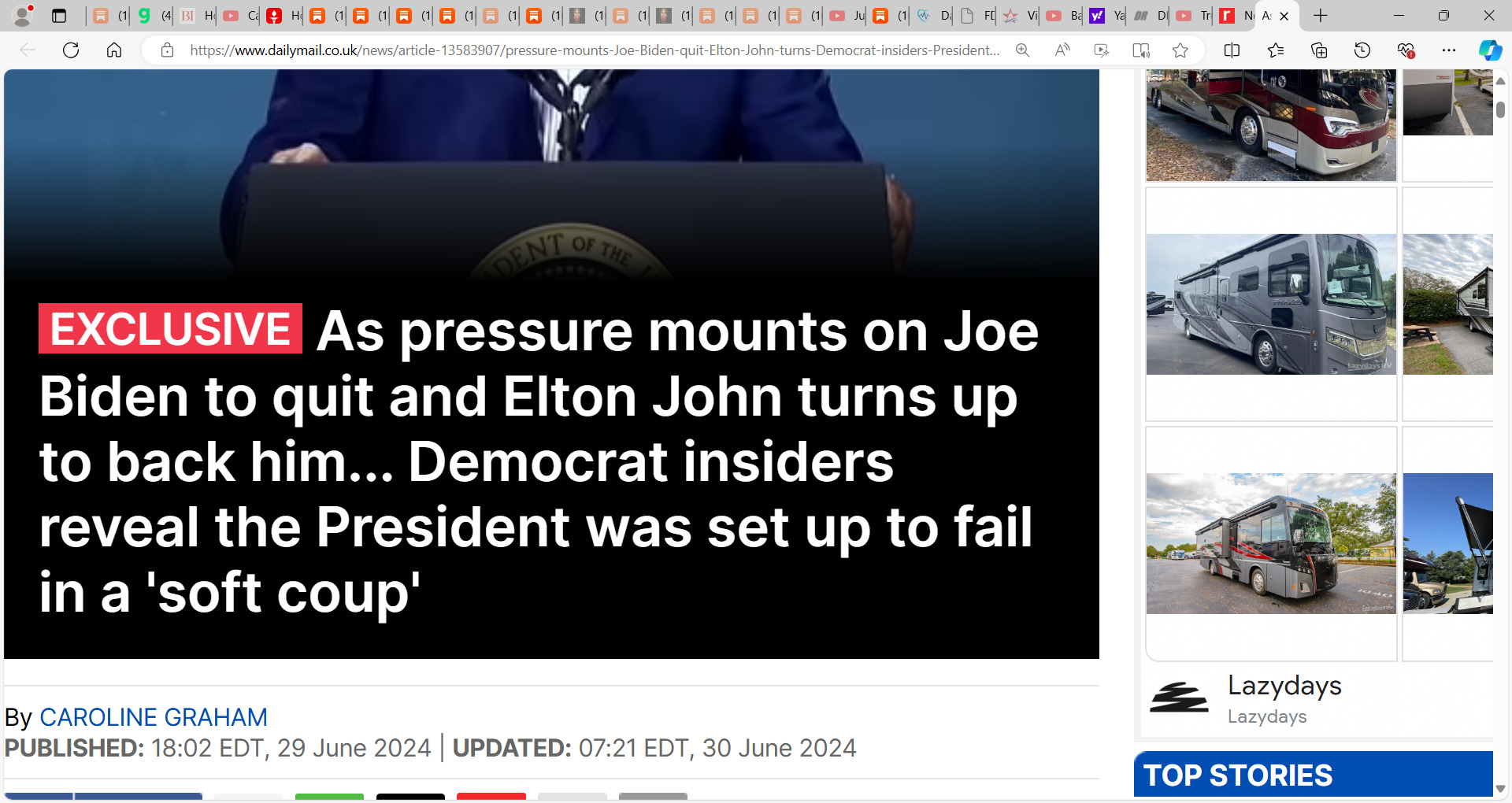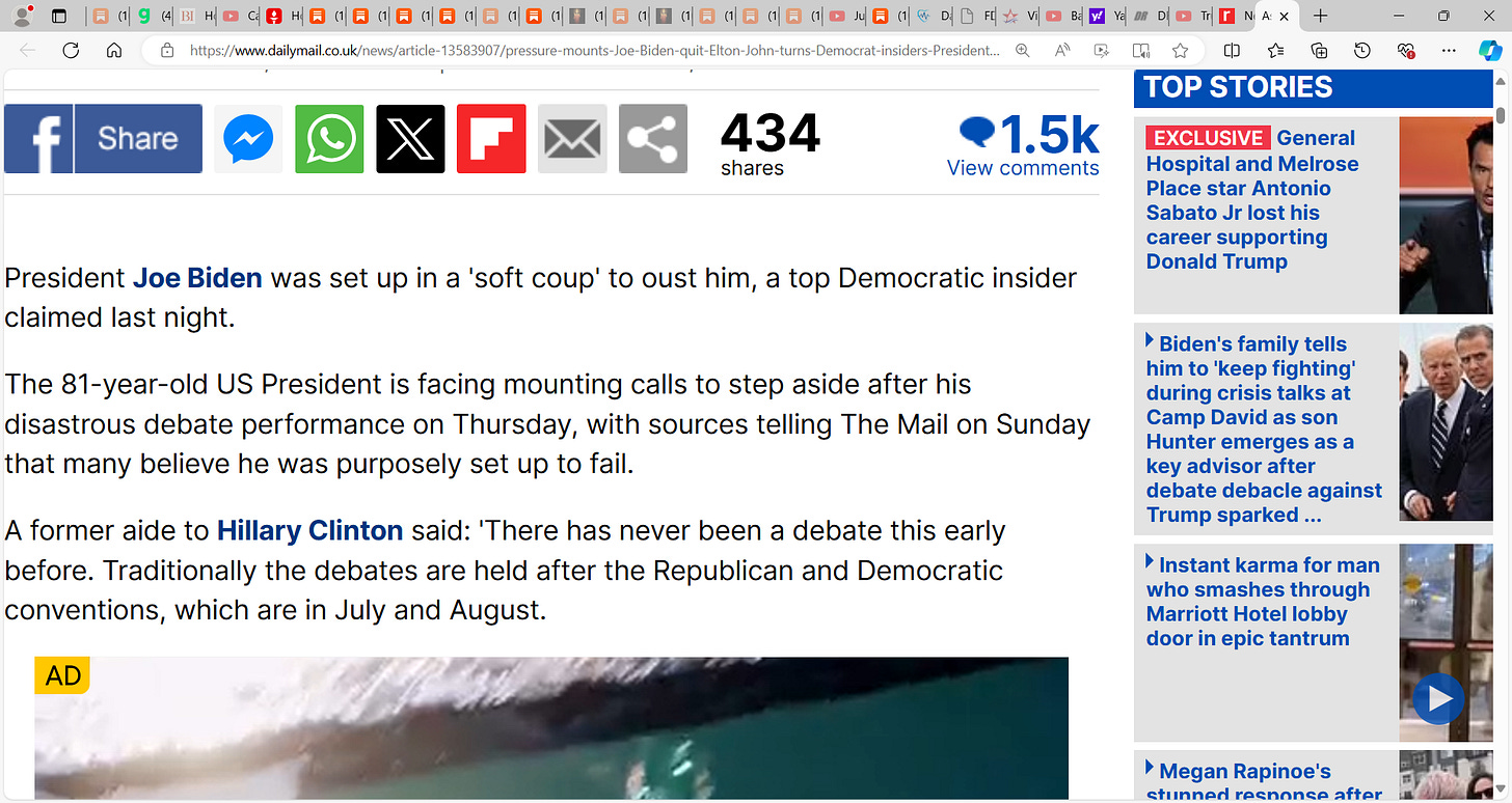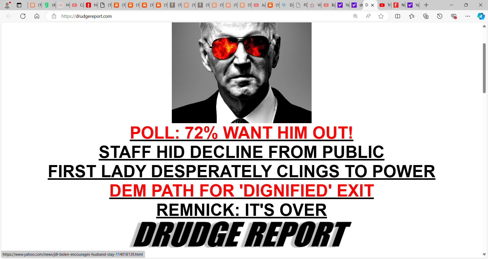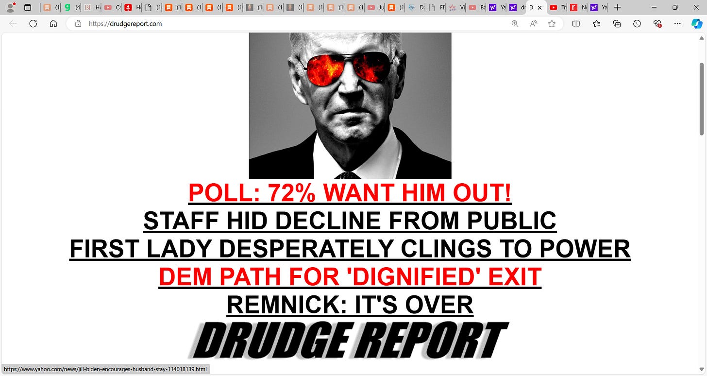 See DRUDGE recent headlines (note, DRUDGE routinely cups Biden’s balls, used to cup Trump’s but somewhere they fell out (ask Coulter about that)):