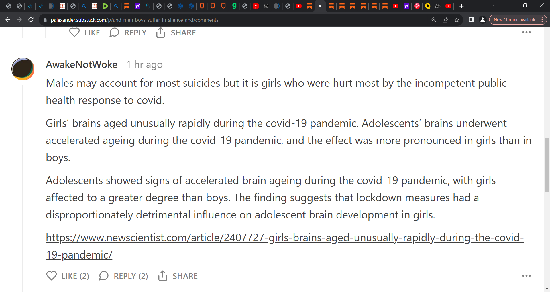 health response; "Girls’ brains aged unusually rapidly during the covid... Adolescents’ brains underwent accelerated ageing..., and the effect was more pronounced in girls than in boys"