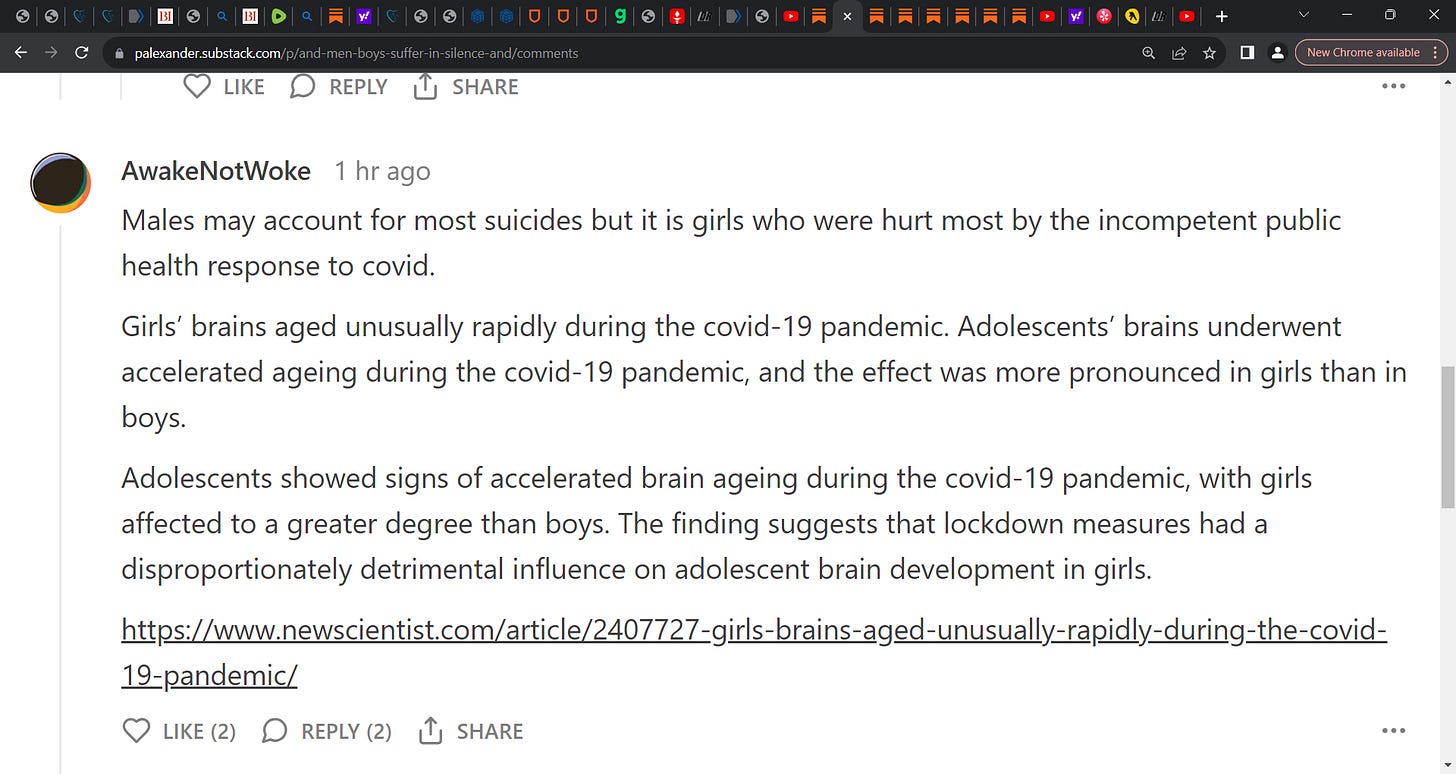 AwakeNotWoke share this article that is very critical for while males/boys suicide rates highest across last 5 years (real urgent problem), girls/women who were hurt most by the incompetent public