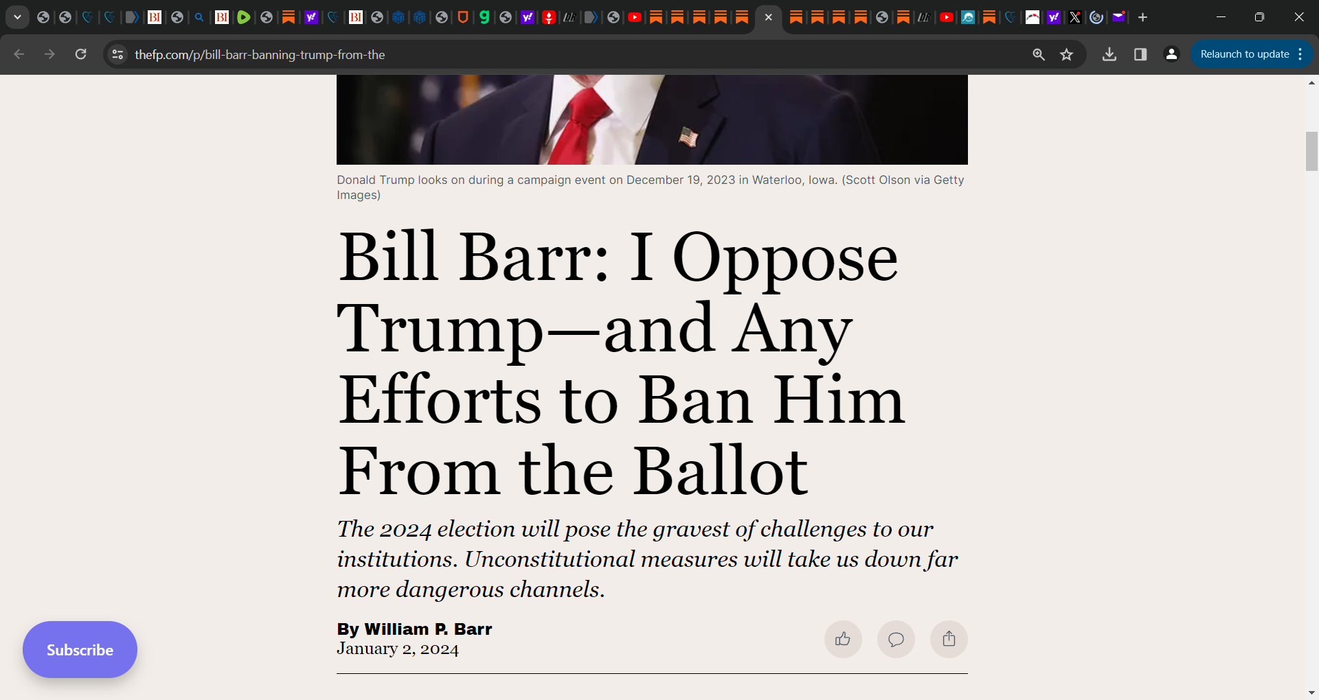 'Oh I don't like Trump but better not keep him off the ballot, come on Barr, we heard you got no testicles, blowhard, so why don't you say how you really feel, we know, so say it, two-timing Arnold!'