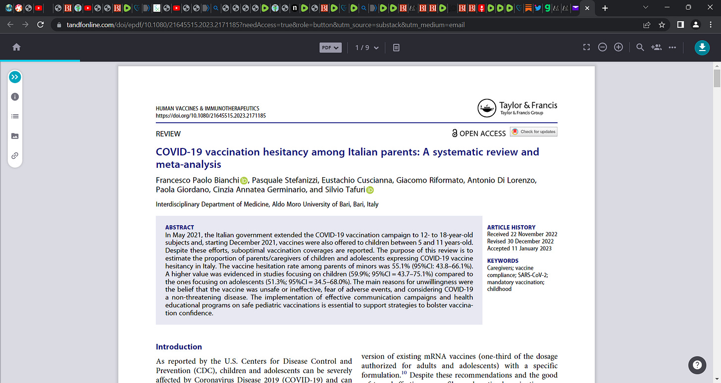 Dr. Peter McCullough pointed to this study and I looked at it & he also has done his own substack worth the read; Italian parents mirror US parents who think the jab is not safe & not effective