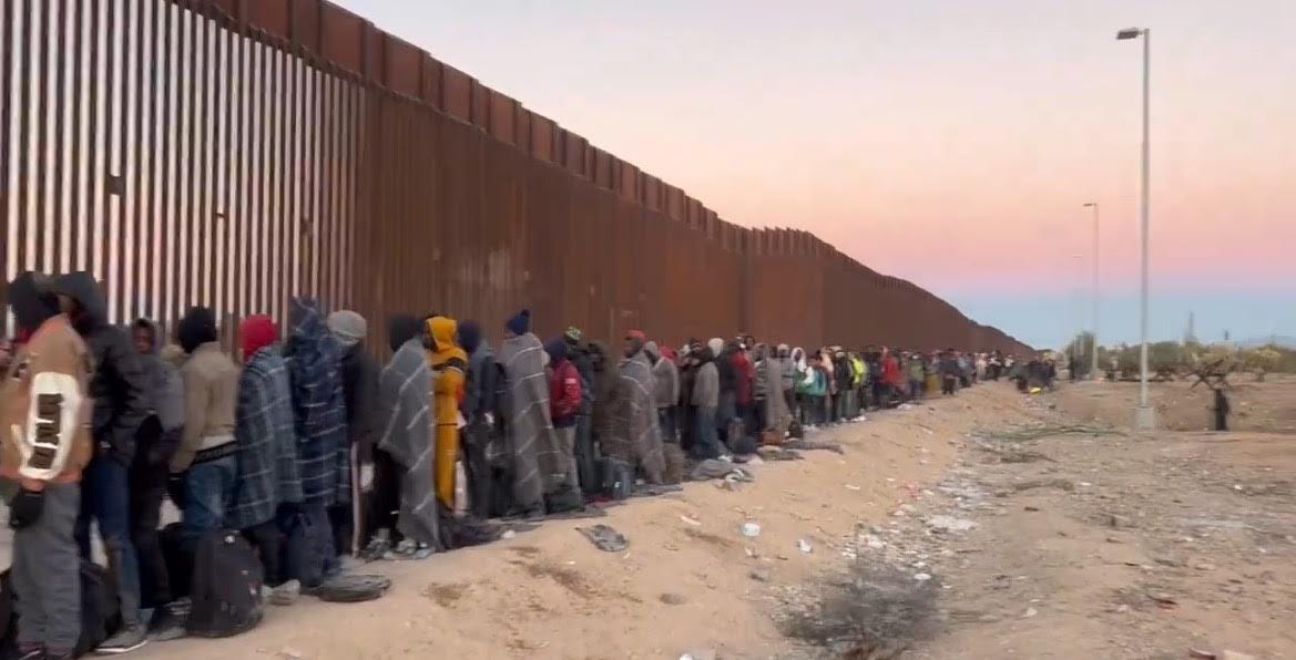 ‘A massive line of military-age men from all over the world including Africa and the Middle East illegally crossed into Lukeville, Arizona late Wednesday night.