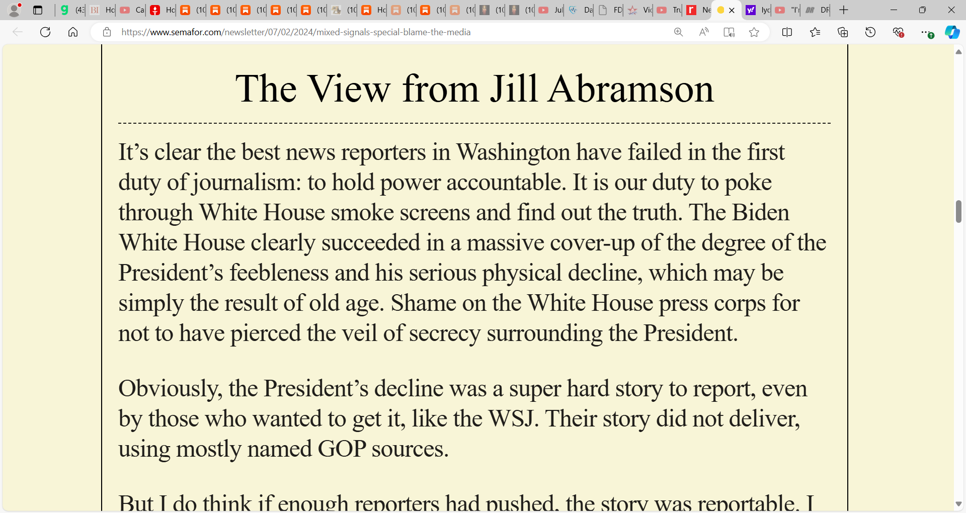 The media are dogs in this for they lied, lied and lied, for they have a moral obligation, as the 4th estate, a defined obligation to always inform the public honestly and truthfully, and to tell the truth to the American public, especially when it comes to issues that are critical to the nation and national security as the president’s mental and physical health. Jake Tapper and Bash did a good interview debate, but they were part of the lie for 4 years and should be fired, money taken, and maybe face real penal recourse. The fourth estate (4th) the media now has zero credibility. They cannot say they ‘did not know’.