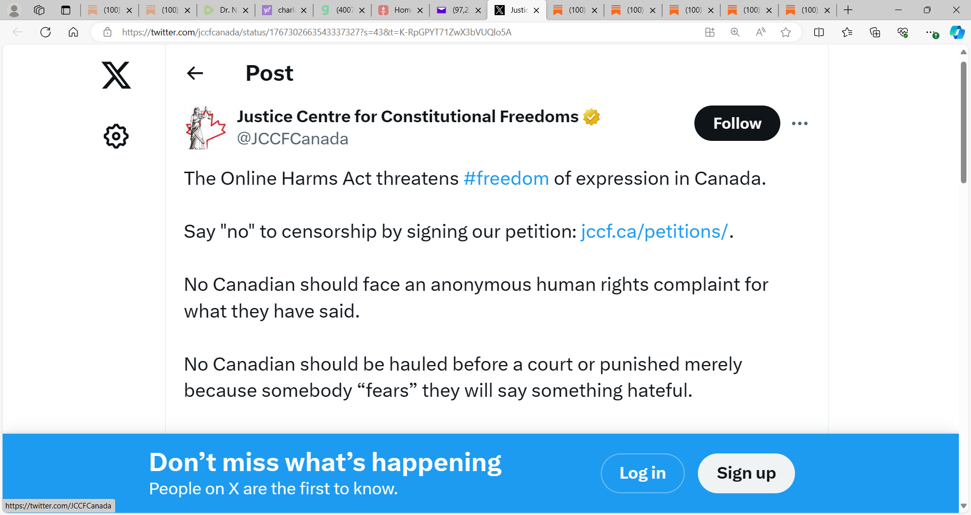 You can be jailed for life, stripped of all your money in this Trudeau bill, if some anonymous persons, files a complaint not to a court where you face accusers, but to a tribunal...and they can go back 25 years if they wish of all your internet, mails, everything...it is rather insane...never seen anything like it