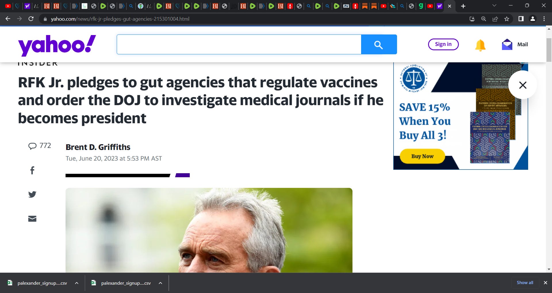 Bobby Kennedy Jr.: 'RFK Jr. pledges to gut agencies that regulate vaccines and order the DOJ to investigate medical journals if he becomes president'; BOOM! love this Bobby, take them down to studs