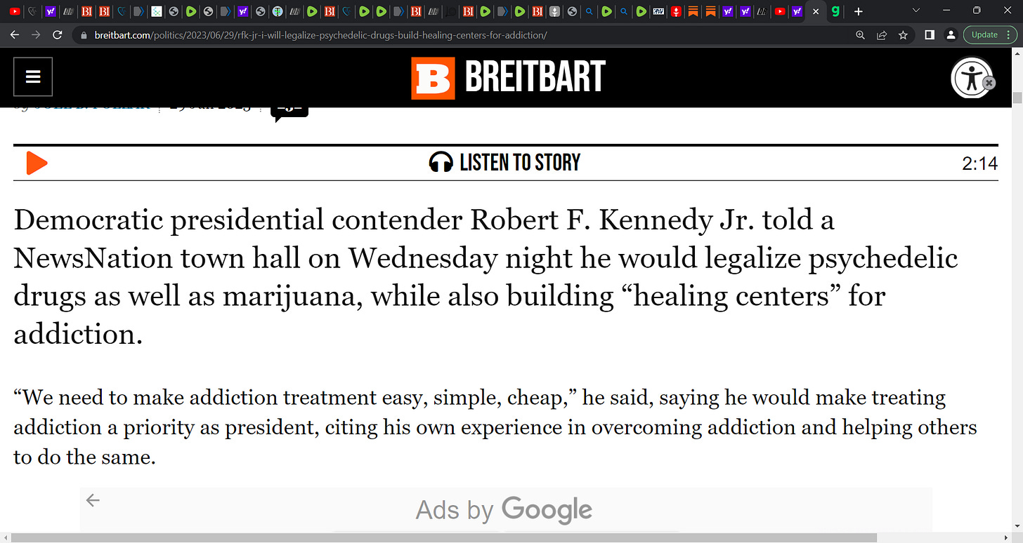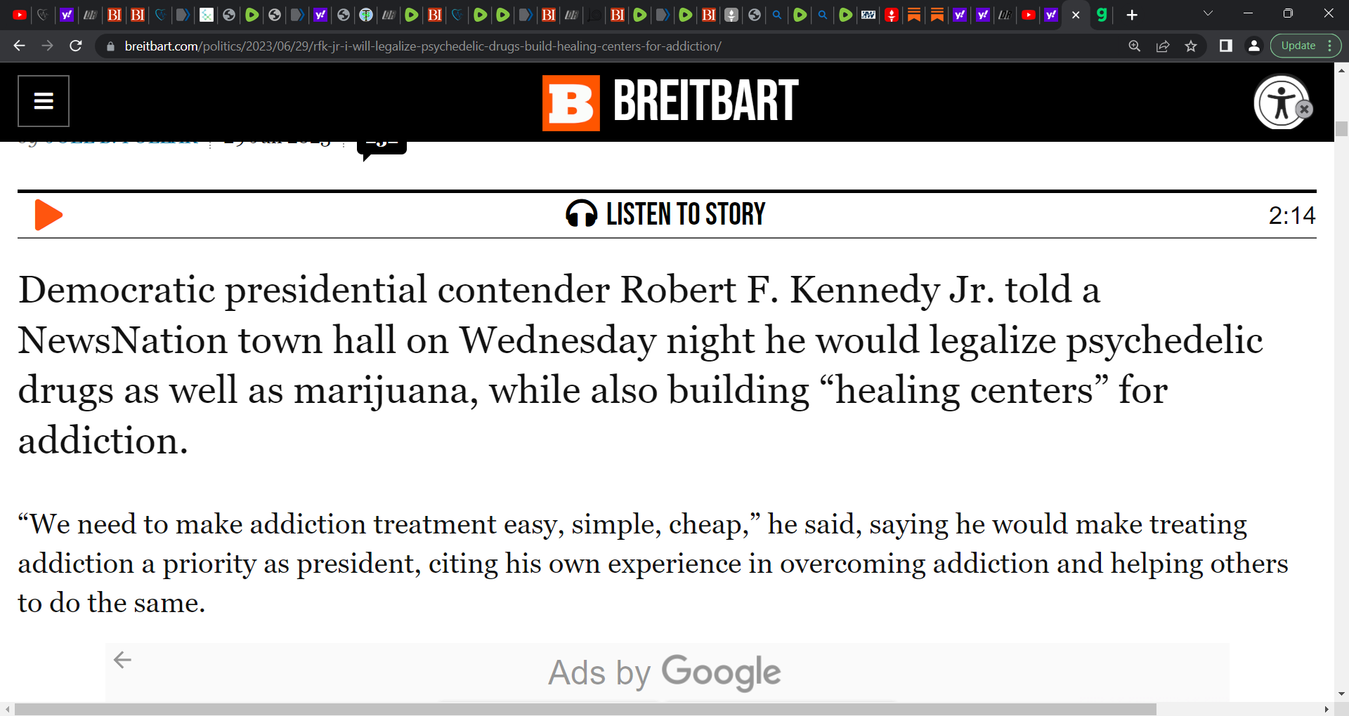 What they did not say in the headline was: Bobby stated he would approve medicinal psychedelics and would have to think about any other use. (Since the SSRIs have damaged so many ppl, I can’t see this being good for us as a society).