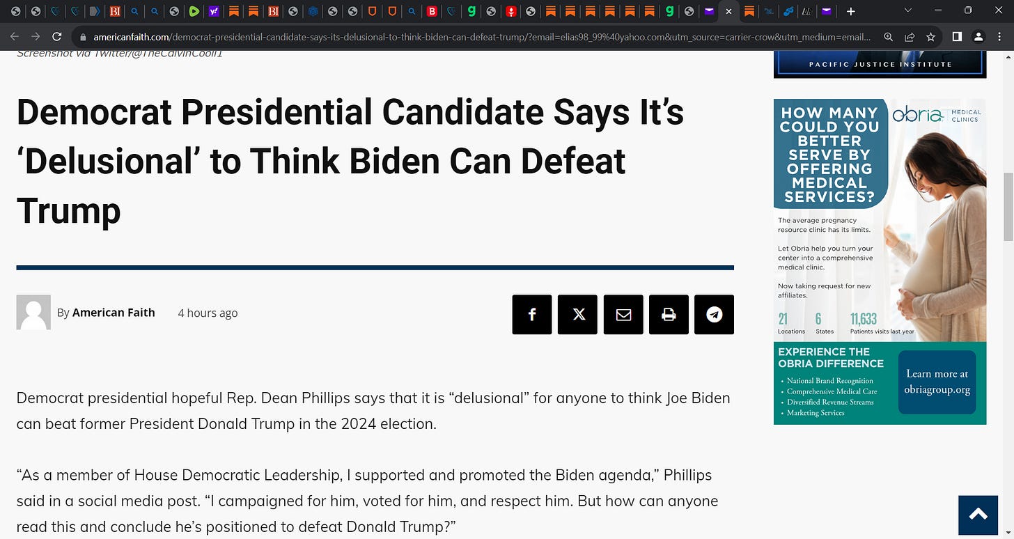 BOOM! American Faith nailed this one! 'Democrat Presidential Candidate Says It’s ‘Delusional’ to Think Biden Can Defeat Trump'; Rep. Dean Phillips