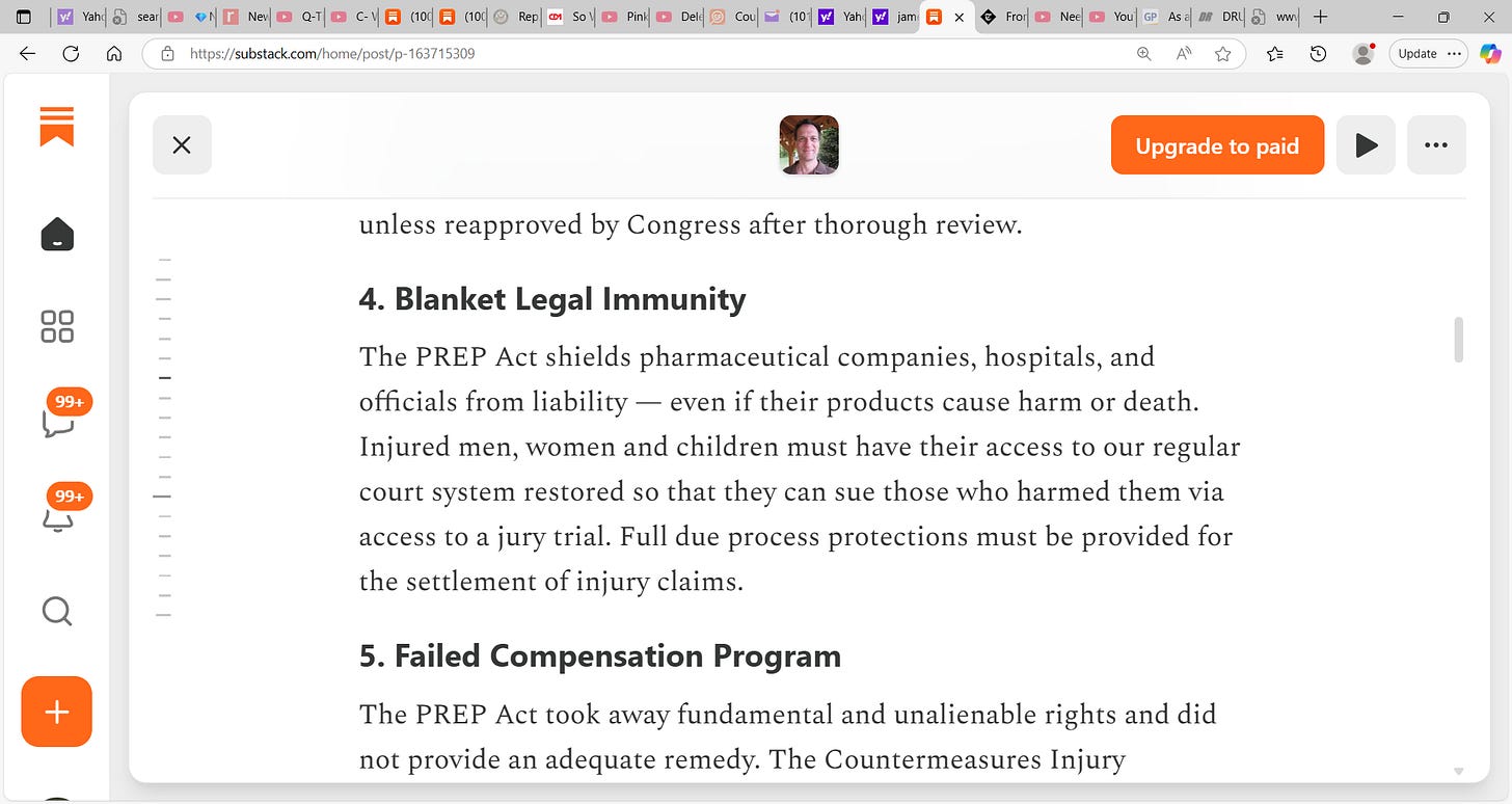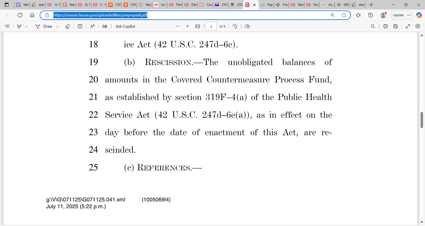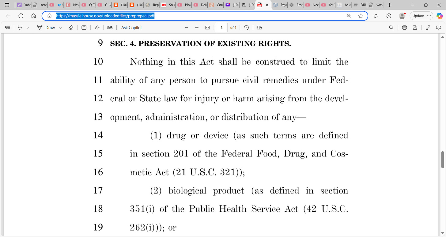 Come on POTUS Trump, give us the American people the fucking right to sue these beasts, help us, at least let us enter courts. Pass this bill. Get it passed, do this for us, at least. We trust you and I still stand with you. Massie is correct! We must end these deadly countermeasures. These ineffective deadly Malone Weissman Sahin et al. mRNA transfection injections inoculations. I support Massie’s PREP Repeal Act 4388. It works to repeal and end Sections 319F–3 and 319F–4 of the Public Health Service Act — in effect ending liability and legal protections for pandemic countermeasures.