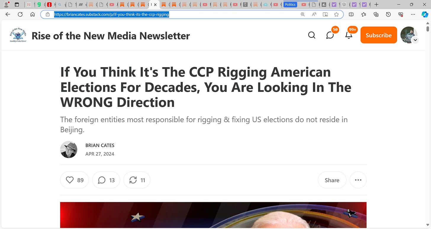 so along comes BRIAN CATES with this stunning interesting piece I urge you to read (shared by my subscriber and fast becoming friend Dave and friend because we get one thing, we have a nation to save and humanity for if USA falls, humanity fails):