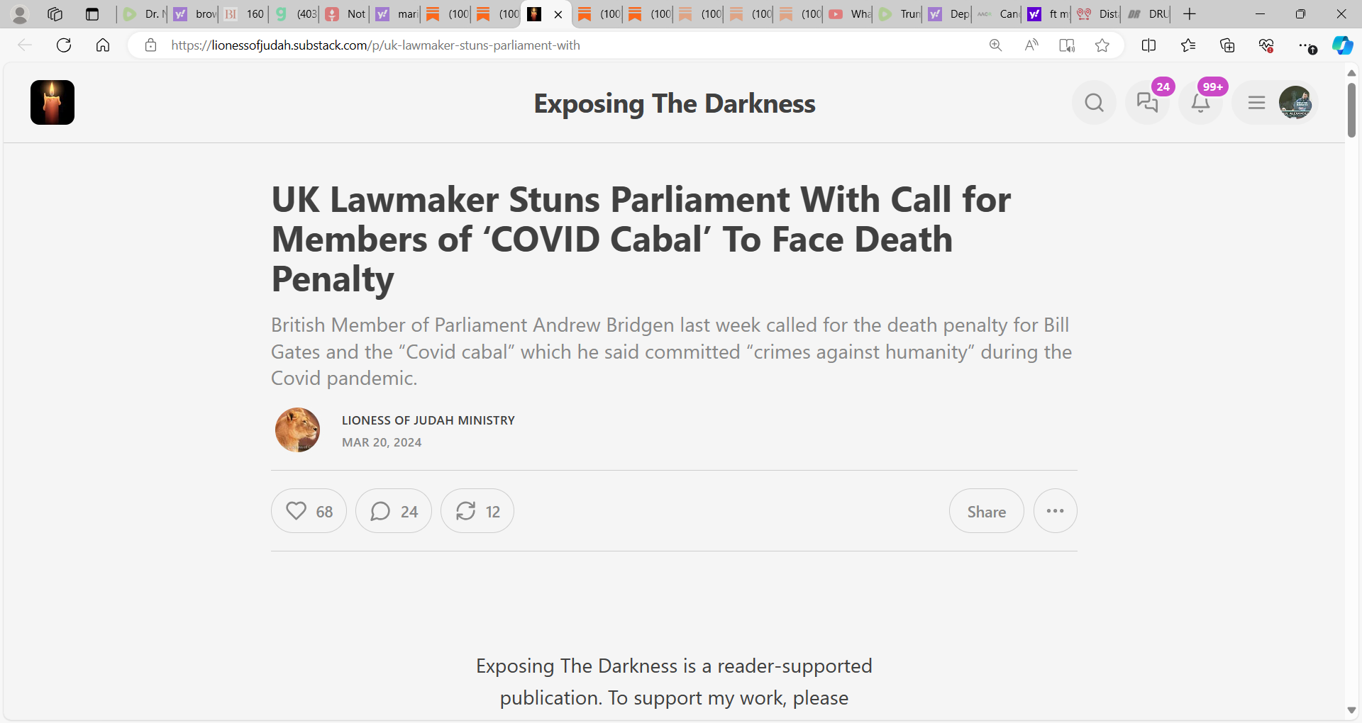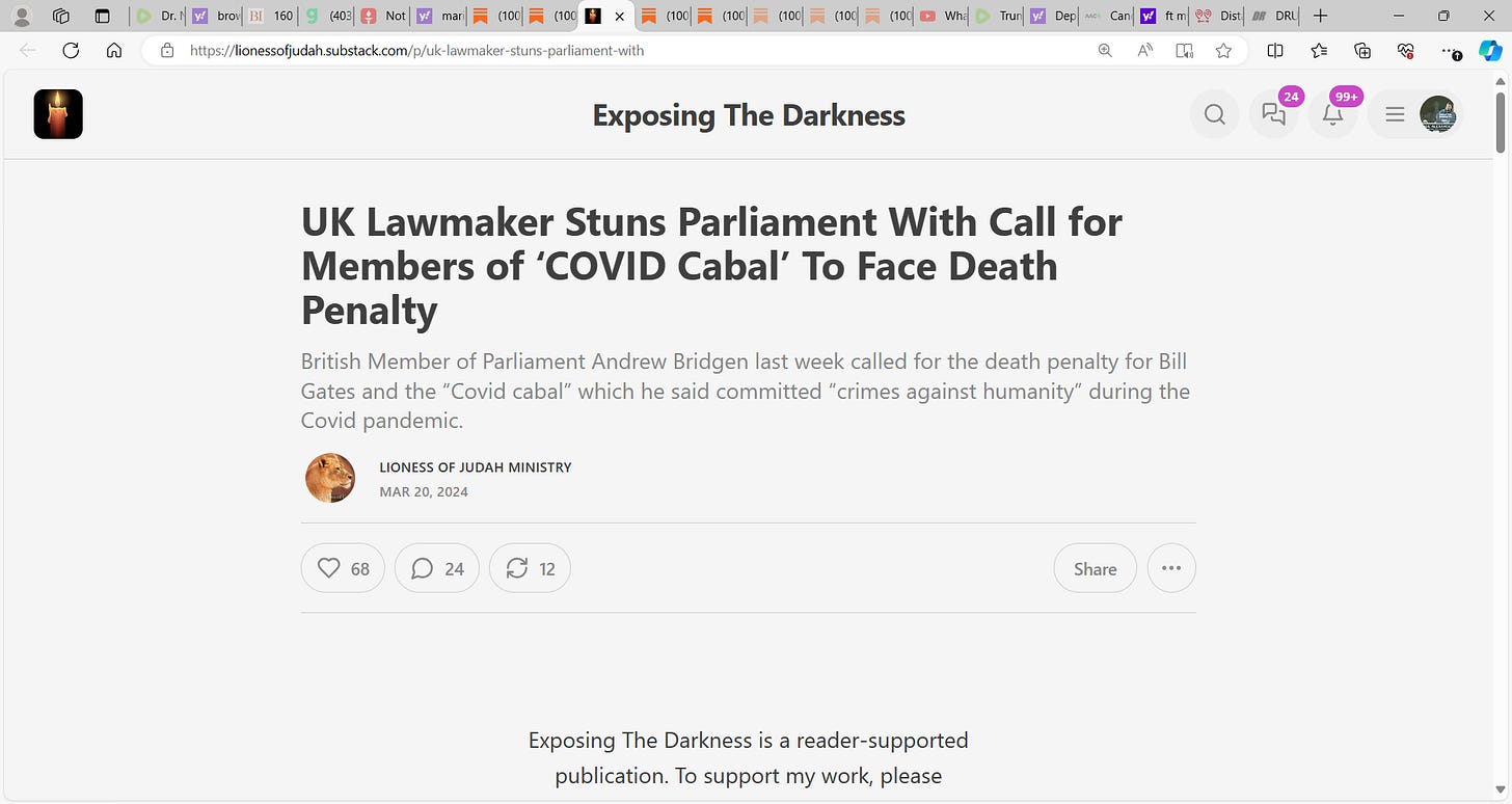 BOOM! Lioness of Judah stack striking deep into enemy territory here: "British Member of Parliament Andrew Bridgen last week called for the death penalty for Bill Gates and the “Covid cabal” which he